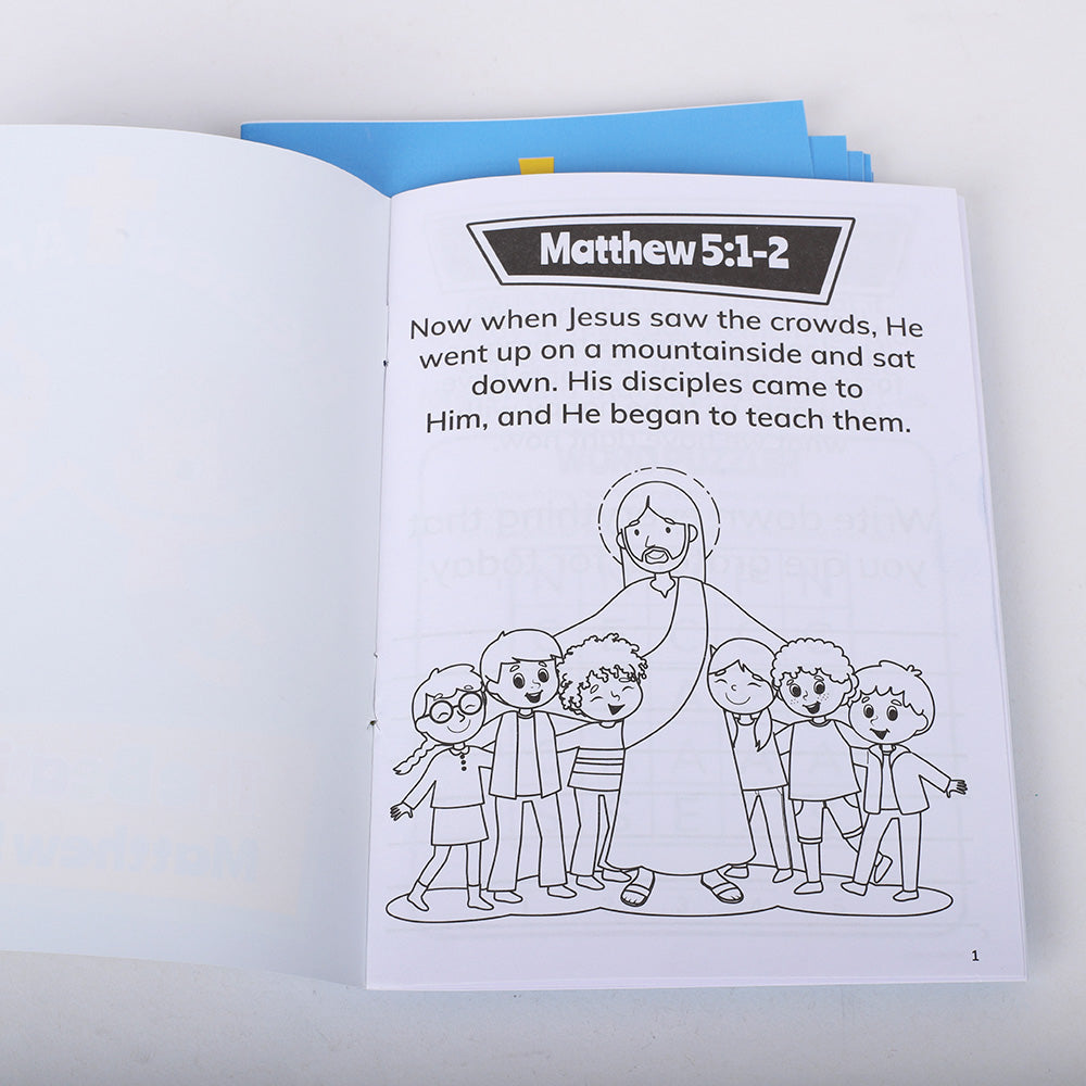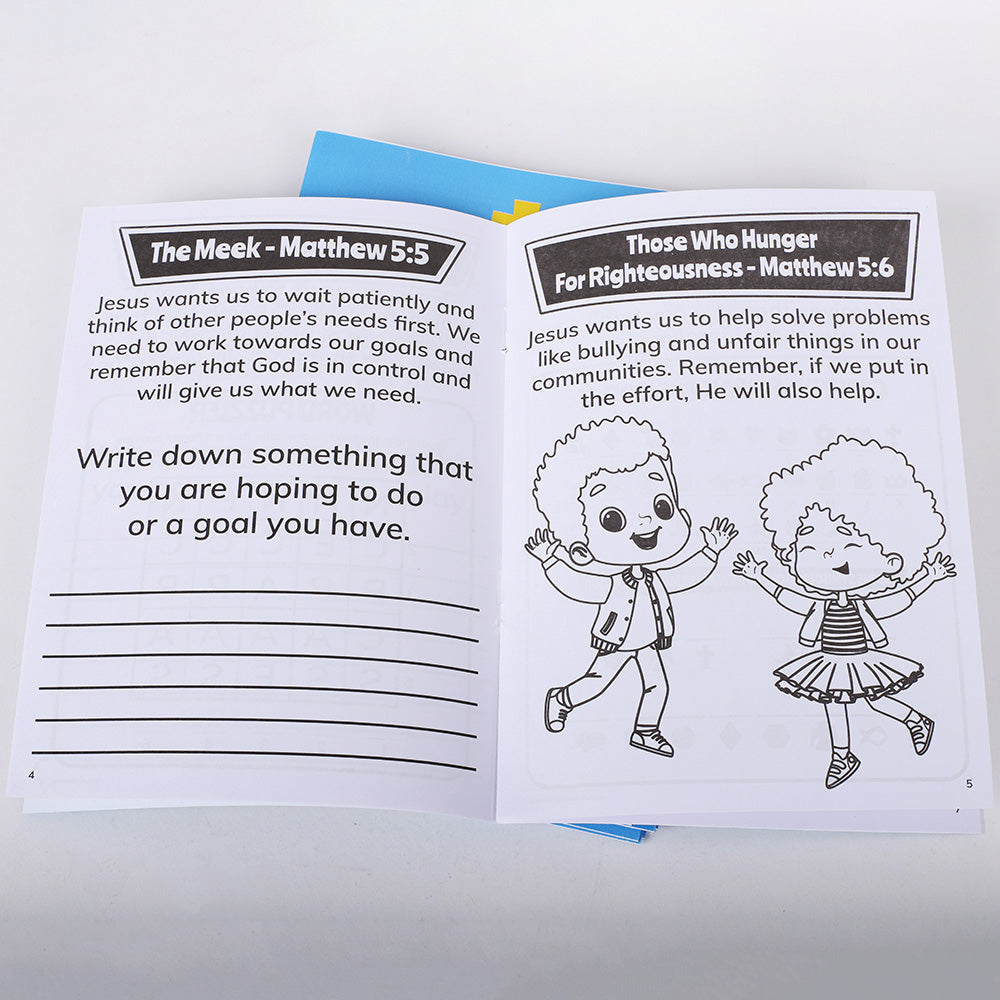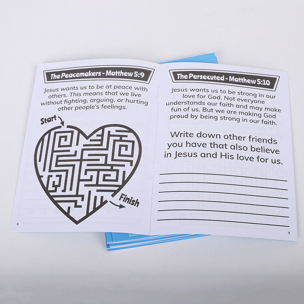 These 12-count activity books offer an enjoyable and interactive way for children to explore the Beatitudes (Matthew 5:3-11). Each book is filled with 12 pages of fun, faith-building activities like word searches, coloring pages, mazes, prompts, and more—all designed to teach children about the powerful blessings Jesus shared with His followers.