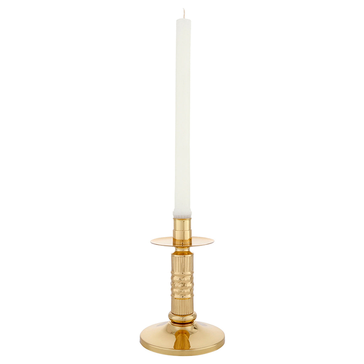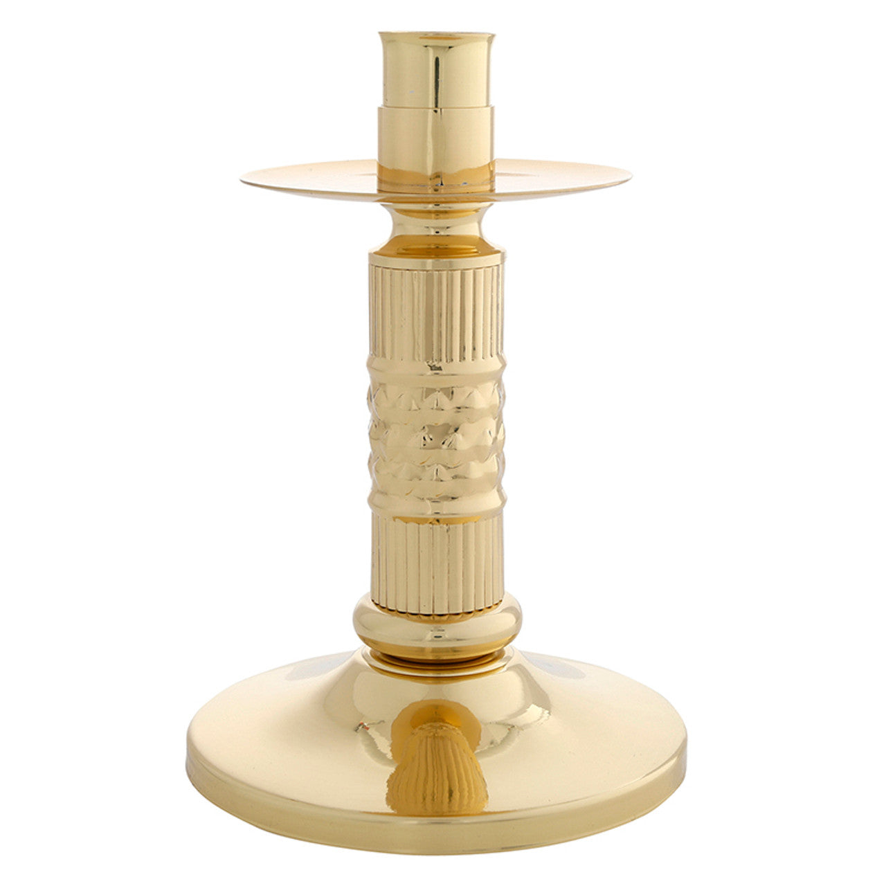 Our stately pair of brass Altar candlesticks create a beautiful frame or backdrop for your Eucharistic ties. The short candlesticks have a 7/8 inch socket for wax candles and adaptable for liquid candles as well.