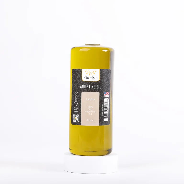 The Exodus Holy Oil 32oz holds deep biblical significance, as it is mentioned in the Book of Exodus (Exodus 30:22-30), where God instructed Moses to prepare a sacred anointing oil using specific ingredients. This oil was used to consecrate holy objects, anoint priests, and set apart individuals for divine purposes.