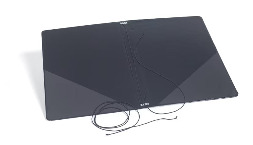 The Anthem Binder is made of black vinyl-covered cardboard and has elastic bands designed to hold up to five anthems. It is a black, vinyl-covered cardboard binder (8" x 11 1/2"), with 2 clear plastic pockets, that holds up to 5 anthems using coated elastic bands. You can increase the capacity to 8 by adding additional bands. A 3/4" wide metal strip runs the length of the spine, with 4 hooks at the top and bottom to hold the elastic bands.