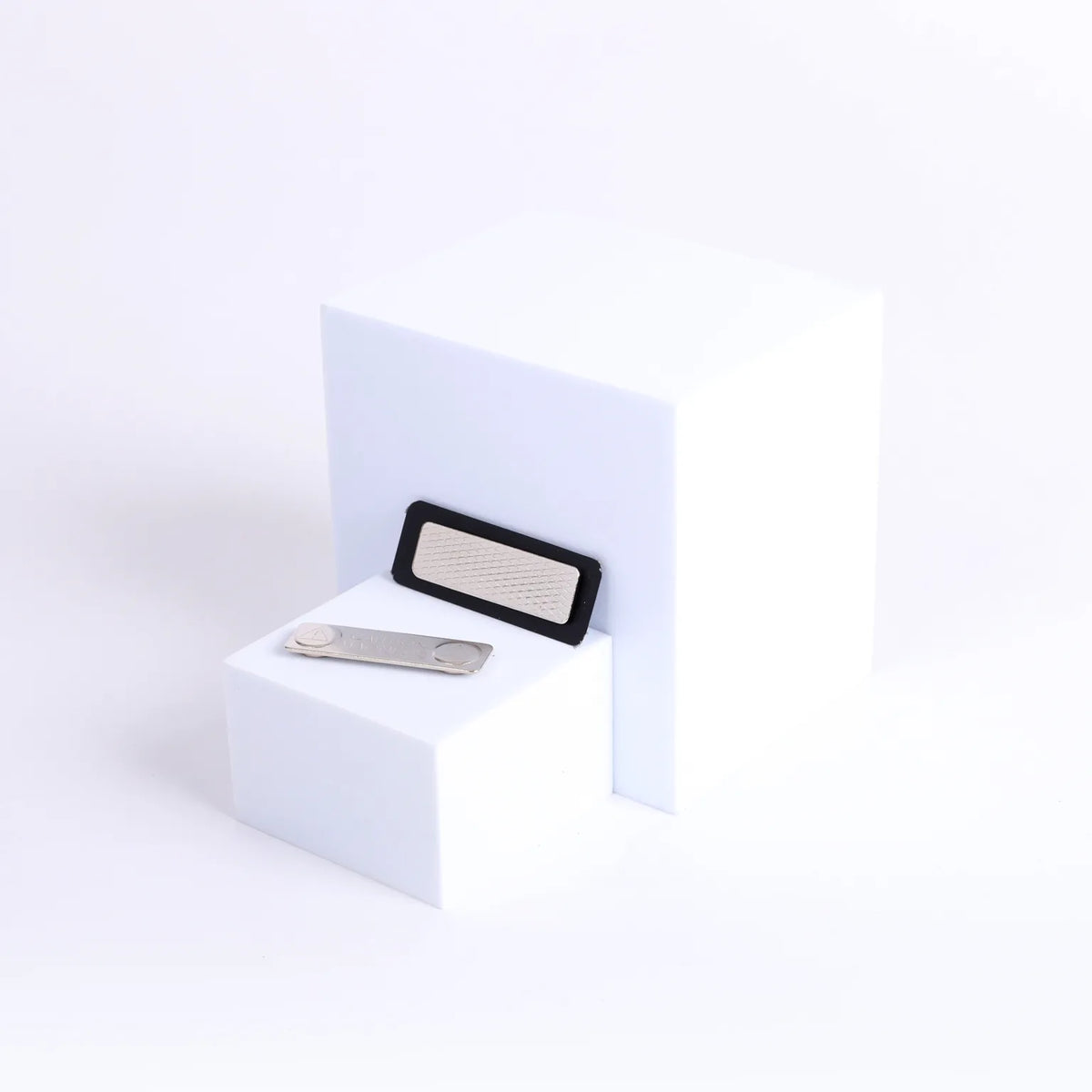 Our badges are made in the USA with high-quality materials, and equipped with heavy-duty magnetic backing to attach to any fabric without damage.