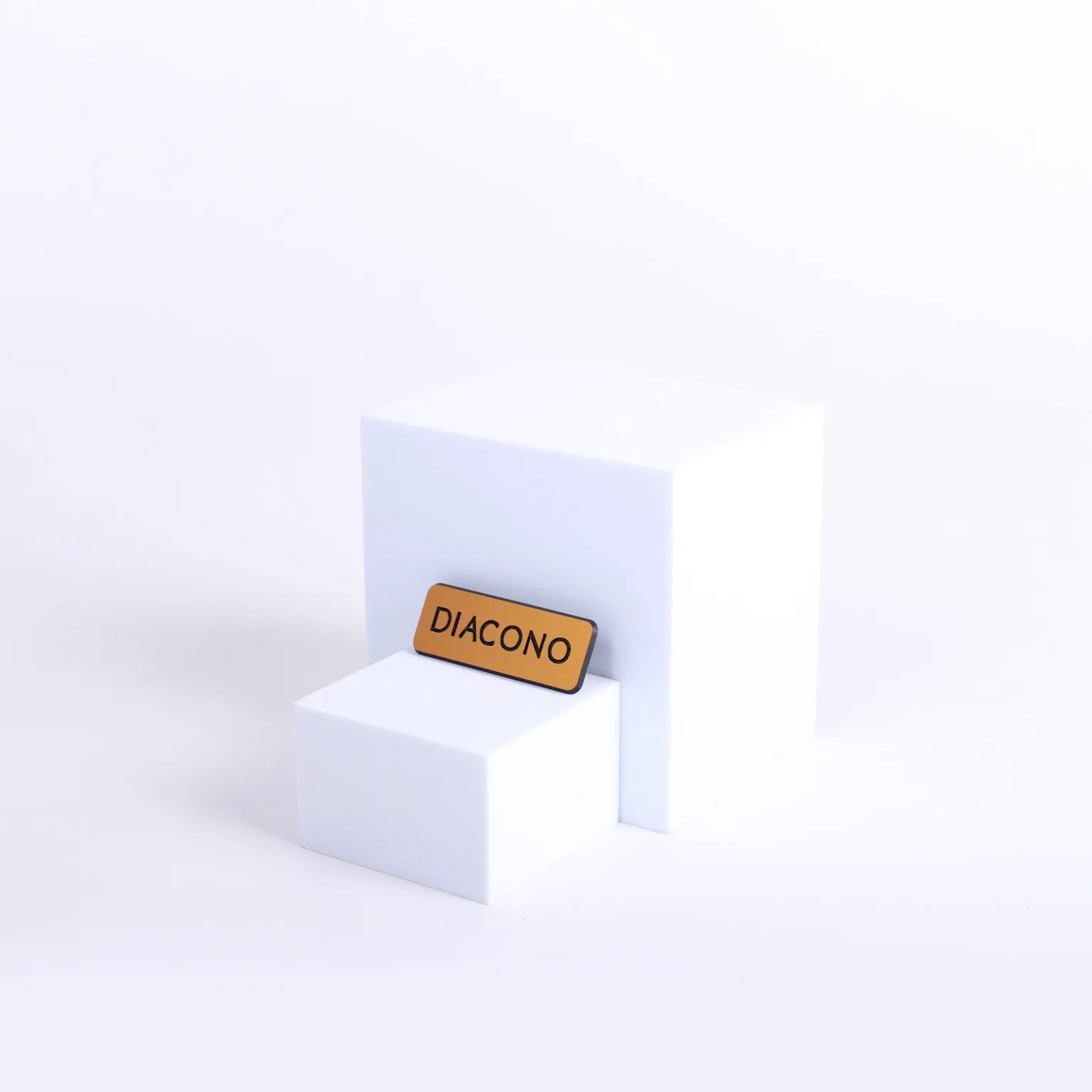 The “Diacono” badge is a stylish and functional accessory that is perfect for empowering the members of your church. With its contemporary and minimalist design, this badge boasts clean lines, rounded edges, and a warm gold finish. The engraved lettering adds an elegant touch, making it a versatile accessory that can be worn during services, events, outreach, and more.
