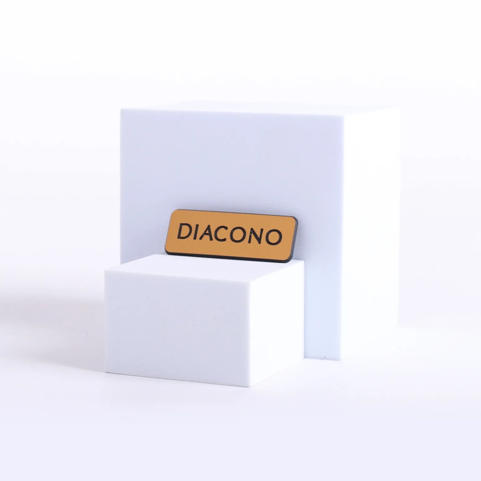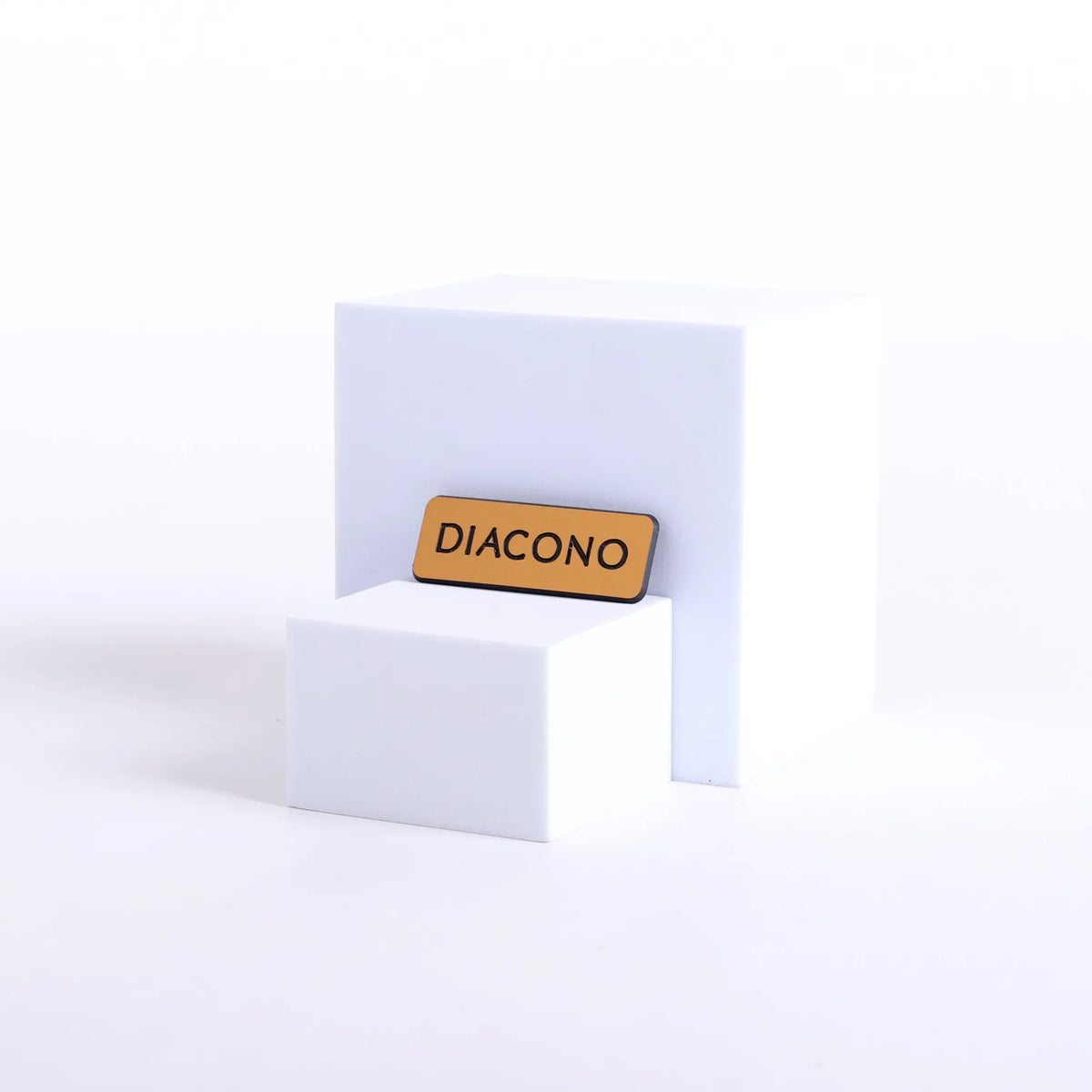 The “”Diacono”” badge is a stylish and functional accessory that is perfect for empowering the members of your church. With its contemporary and minimalist design, this badge boasts clean lines, rounded edges, and a warm gold finish. The engraved lettering adds an elegant touch, making it a versatile accessory that can be worn during services, events, outreach, and more.
