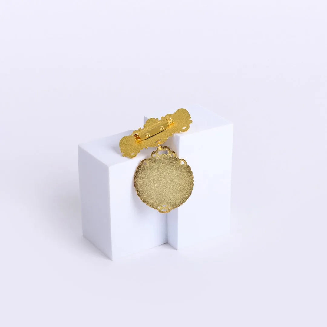 This beautifully designed, golden “Deaconess” Badge is the perfect accessory for Church services and events where clear identification is essential. Featuring an elegantly crafted top bar with delicate scrollwork edges, it adds a sophisticated and timeless touch to any attire. The badge itself is a fancy round design, intricately engraved to enhance the overall aesthetic, making it a standout piece.