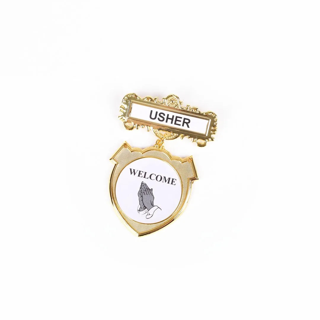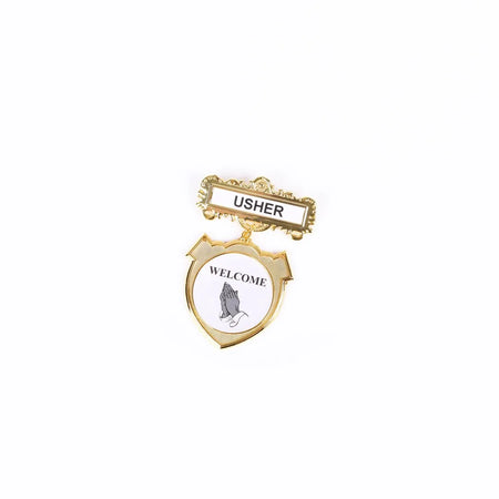 The hanging shield badge measures 3.5 inches in diameter and features an elegant image of ethnic praying hands, adding a personal touch that resonates with the spiritual significance of the role. The “Welcome” text on the badge further enhances its welcoming message, helping congregants feel at ease and assured that they are in good hands.