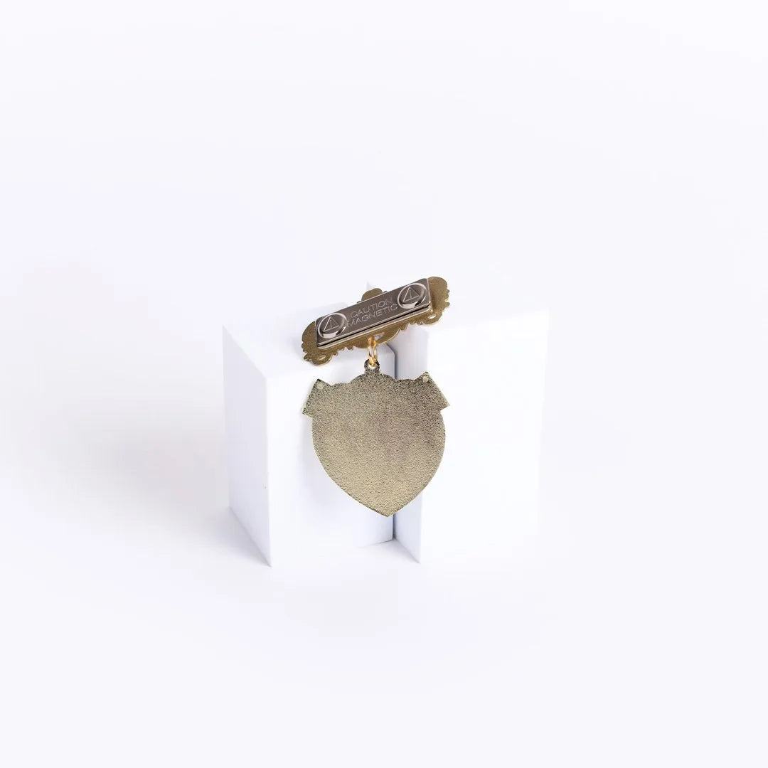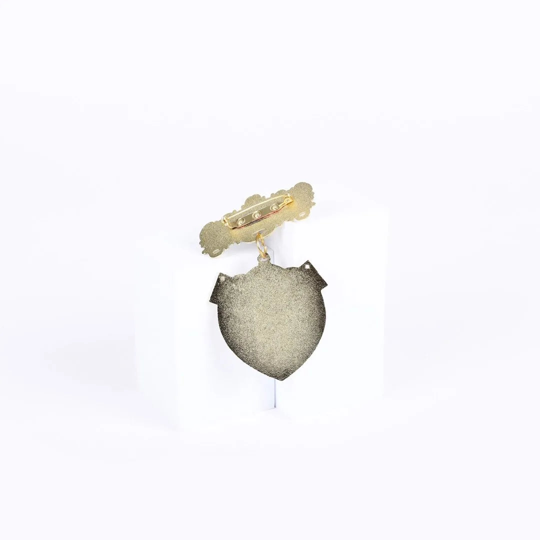 This beautifully designed, golden badge is an excellent choice for church services and events where clear identification is essential. Featuring a top bar with intricate scrollwork engraving and a shield-shaped badge with smooth, simple edges, this badge is both elegant and functional.
