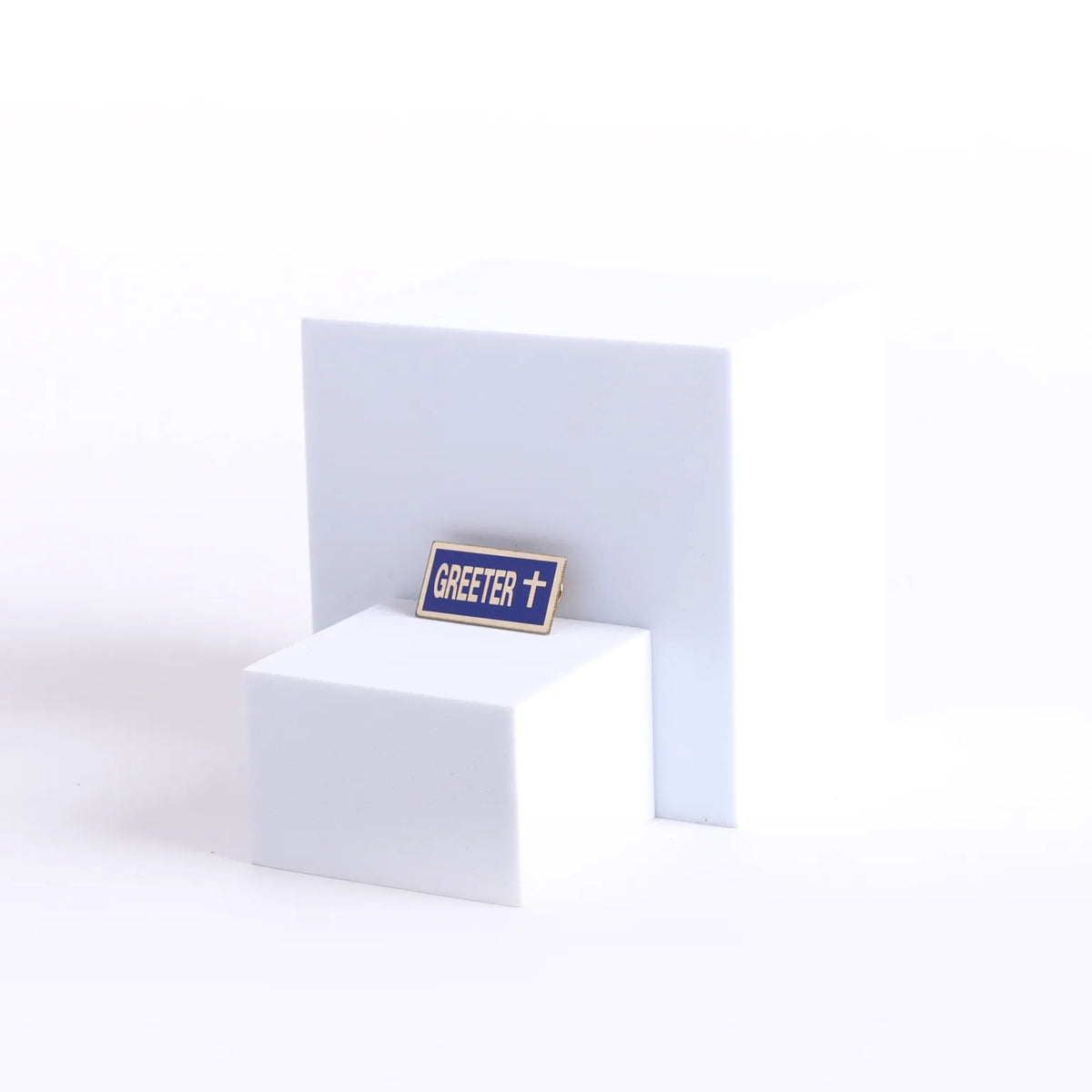 Make a lasting impression with this stunning “Greeter” Metal Badge, designed to add elegance and professionalism to any greeter’s attire. Crafted from high-quality metal, this badge features a shining gold finish paired with a deep blue background, creating a sophisticated yet simple design that stands out beautifully. The word “Greeter” is displayed in a bold, elegant font, accompanied by a classic cross emblem, symbolizing warmth and hospitality.