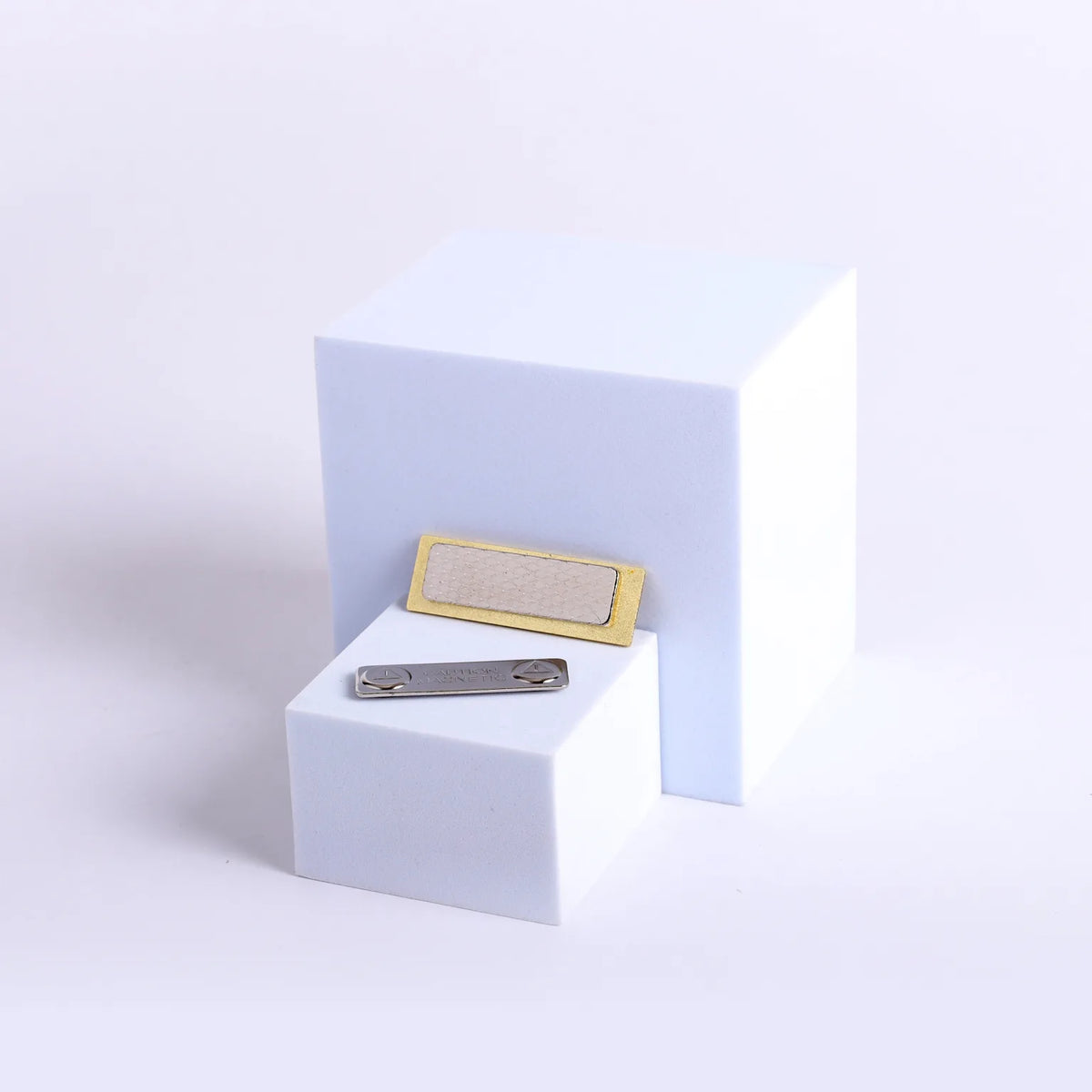 Crafted from durable metal, it offers a premium weighted feel without being overly heavy, making it comfortable for extended wear. With its compact dimensions—2.125 inches wide by 0.625 inches tall—it strikes the perfect balance between visibility and subtlety, complementing any outfit seamlessly.