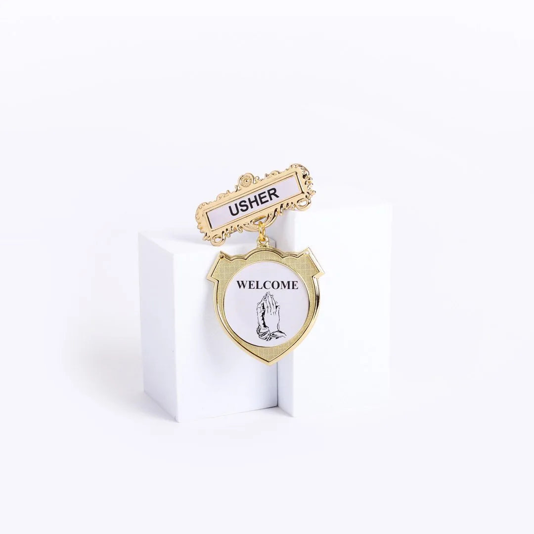 The top bar is meticulously crafted with the word “Usher,” ensuring that the important role of the wearer is clearly communicated to the congregation and event attendees. Whether assisting with seating, providing guidance, or helping during special events, this badge helps identify the wearer as a trusted and approachable member of the church team. The secure pin-back design ensures the badge stays in place, providing peace of mind during busy church services and gatherings.