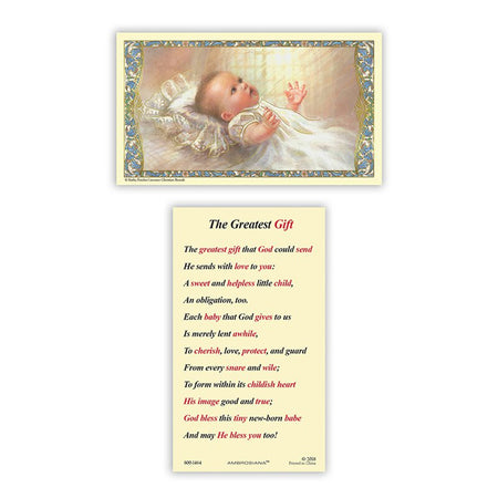 Baptism — The Greatest Gift Laminated Holy Card | Cherished Newborn Blessing – Pack of 25