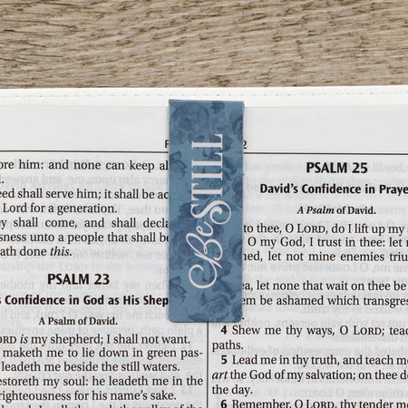 The uniquely designed Be Still Magnetic Bookmark Set with its cool-toned purples and grays and rich cursive text make a beautiful and comforting gift to any friend.