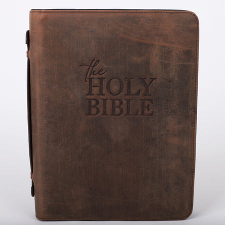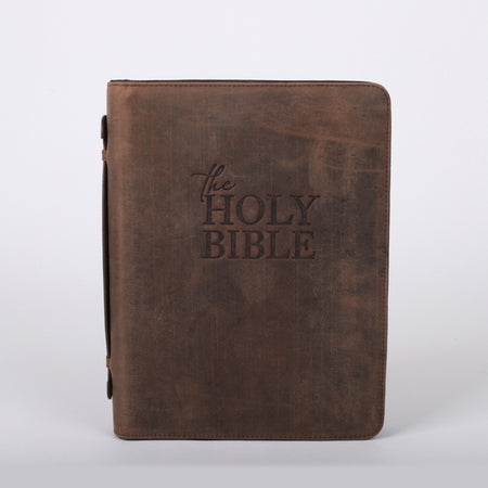 xperience the elegance and durability of our Buffalo Leather Extra-Large Bible Cover. Made from premium buffalo leather, this cover features a beautiful dark brown hue with the signature textured finish that becomes even richer with time. Each Buffalo hide leather product is unique due to the natural grain! The front is elegantly imprinted with the words “Holy Bible,” creating a timeless and sophisticated design that reflects reverence for God’s word.