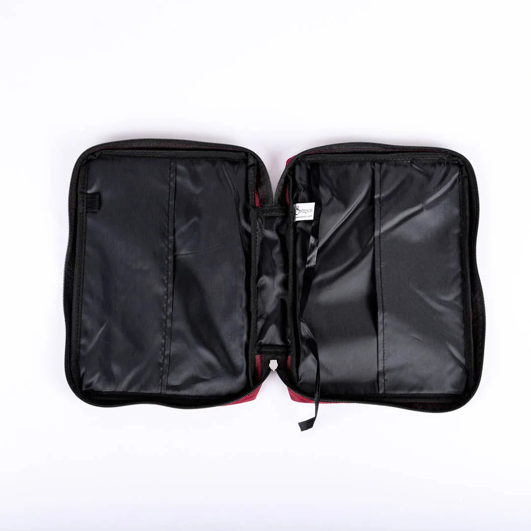 This burgundy canvas Bible cover is perfect for anyone looking for a practical, stylish, and reliable way to keep their Bible protected and organized. Its versatility makes it a great choice for those on the go, ensuring that your Bible stays safe, accessible, and easy to carry. With its high-quality materials and thoughtful design, this cover will become an essential part of your daily life and spiritual journey.