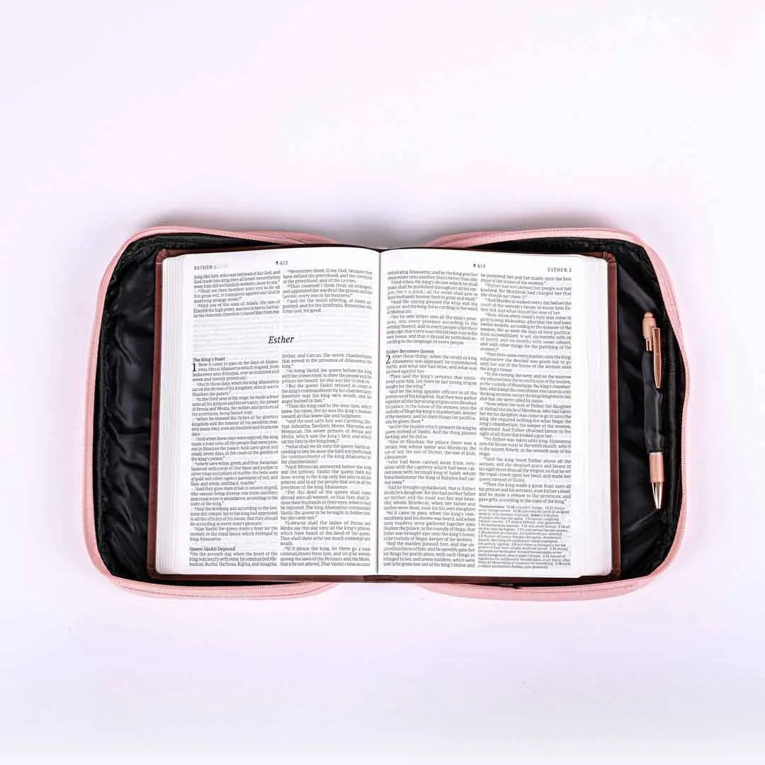 Whether you’re heading to church, a Bible study group, or on a trip, this cover will keep your bible protected and easily accessible.