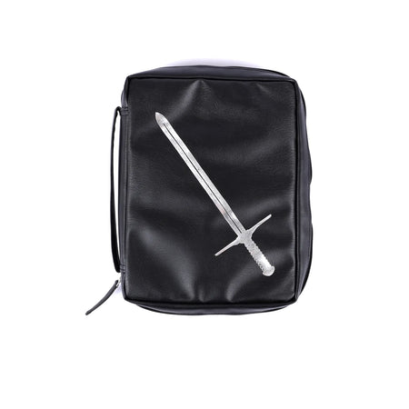 Protect your Bible in style with this quality Imitation Leather Bible Cover, designed to withstand the rigors of daily use while adding a touch of elegance. The cover is black in color and features a striking silver sword design, symbolizing faith and strength. Not only does this cover safeguard your Bible from everyday wear and tear, but it’s also incredibly easy to clean, simply requiring a quick wipe-down to keep it looking pristine.