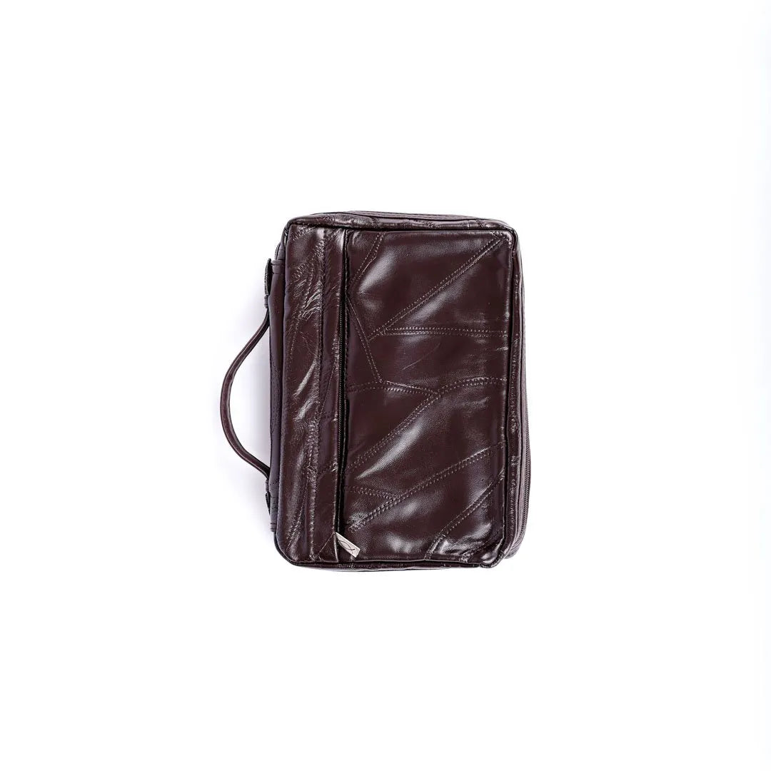 This beautiful leather Bible cover is the perfect combination of style, durability, and practicality, designed to protect your Bible while adding a touch of elegance. Crafted from high-quality leather in a unique patchwork design, this cover is both visually stunning and built to last. Each patch of leather is carefully sewn together, creating a one-of-a-kind look that exudes craftsmanship and attention to detail.