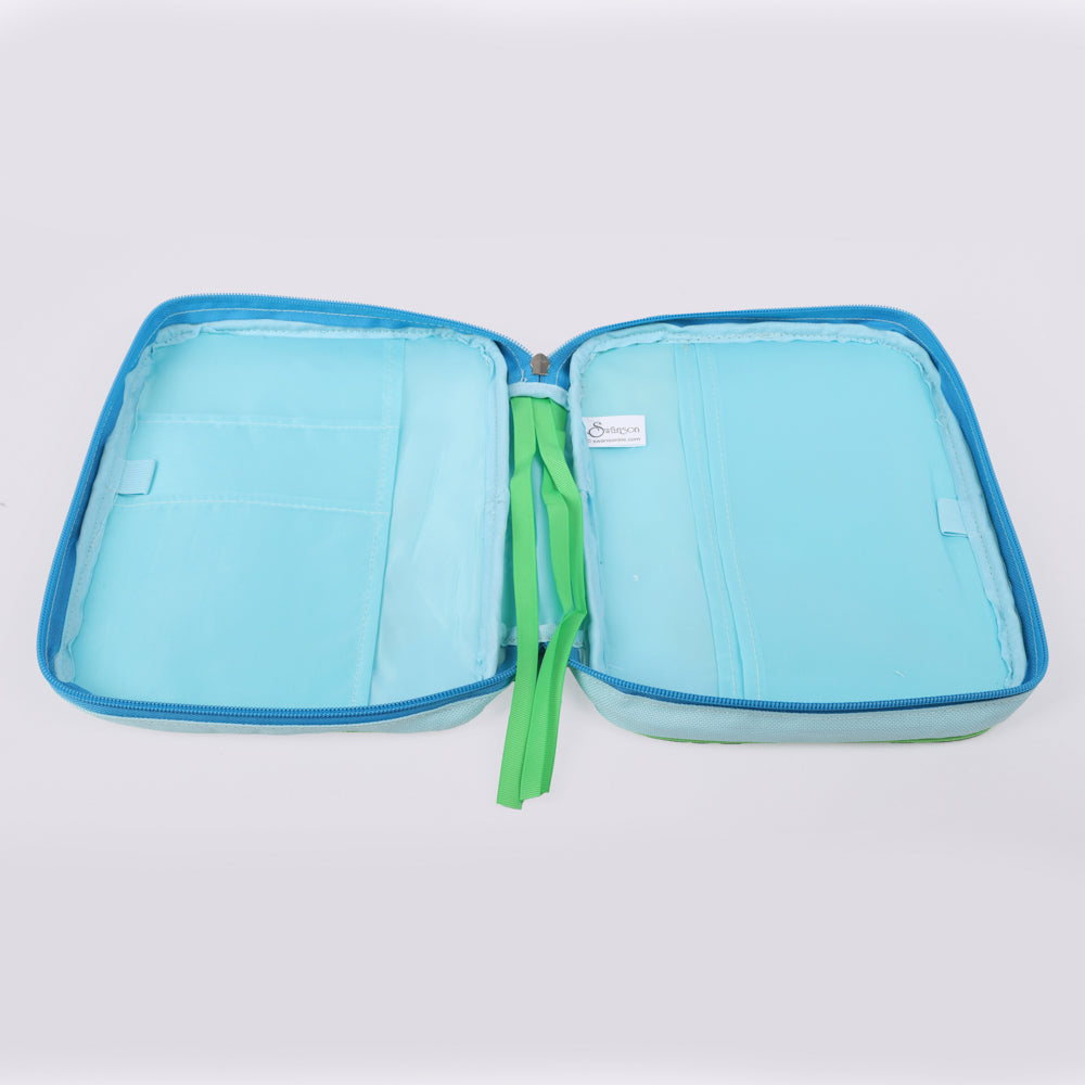 This medium-sized cover (6.625″ L x 1.75″ W x 9.625″ H) is crafted from durable canvas and built for daily use at Sunday School, VBS, or home study. It includes built-in bookmarks to keep their place, interior pockets for storing notes or small treasures, and a pen loop for easy access during Bible study sessions.