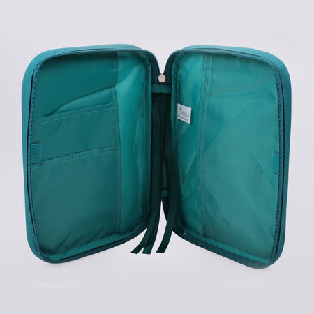 Crafted from sturdy canvas, this medium-sized cover (6.625″ L x 1.75″ W x 9.625″ H) is perfect for daily use at church, Vacation Bible School, or quiet time at home. It includes built-in bookmarks to keep their place, interior pockets for memory verses or notes, and a handy pen loop for writing or drawing during lessons.