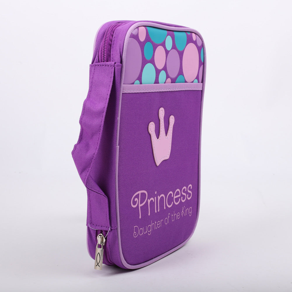 Embrace your royal identity with this delightful Princess – Daughter of the King Bible cover. Featuring a regal crown design on a purple canvas background with cheerful pink and blue polka dots, this cover is both playful and powerful—a lovely reminder of God’s love and your place in His family.