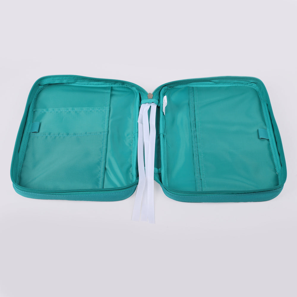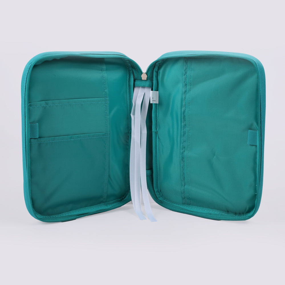 Made from sturdy canvas and sized to fit most large Bibles (7″ L x 1.875″ W x 10.125″ H), it’s perfect for active kids attending Sunday School, VBS, or midweek church programs. The secure zipper keeps everything safe, while built-in bookmarks, interior pockets, and a pen loop make it easy to stay organized during Bible study.