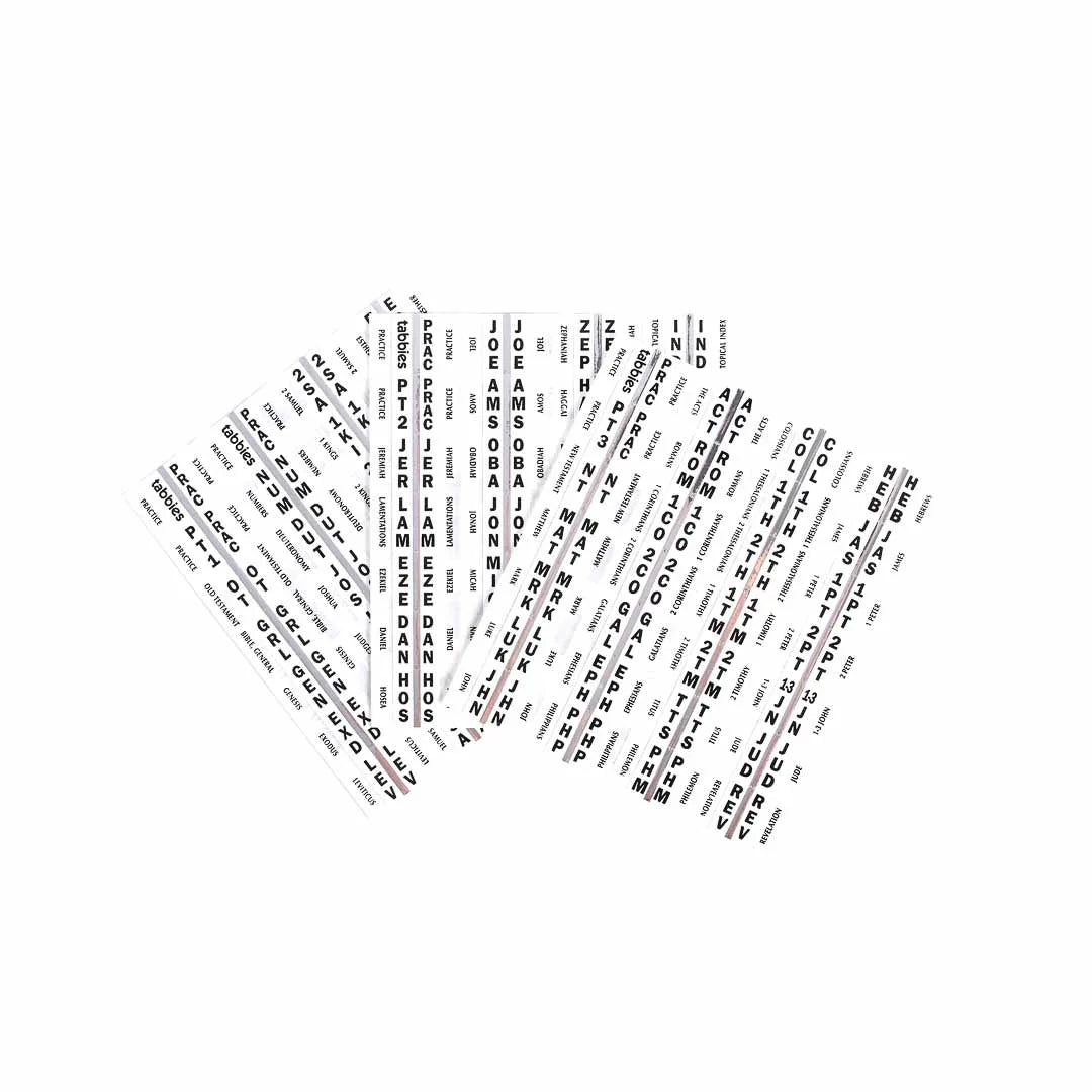 Make Bible study easier and more efficient with these easy-to-apply Bible Indexing Tabs. Perfect for both kids and adults, these tabs allow you to quickly locate any book in the Bible at a glance—no more flipping through pages! Whether you’re studying at home, at church, or in a Bible study group, these tabs will enhance your Bible navigation and make it easier to find the specific books you need.
