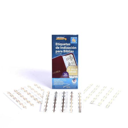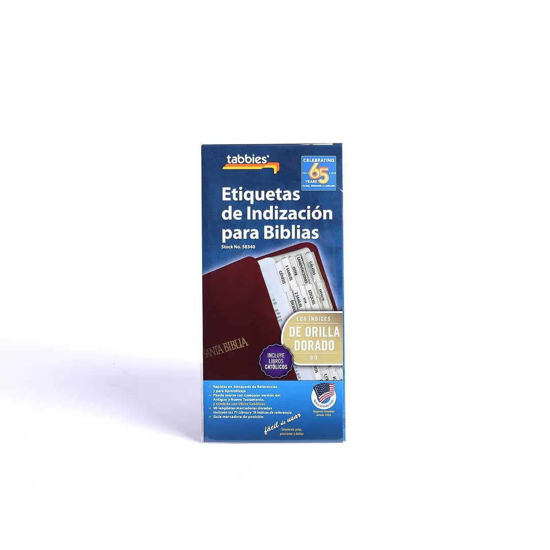 This set features 64 gold-colored tabs and 16 reference tabs for the Old and New Testaments, all printed in Spanish. Each tab is double-sided with a glossy finish, providing both durability and clarity. The gold color offers a refined and elegant touch while making it easy to organize your Bible for quick reference.