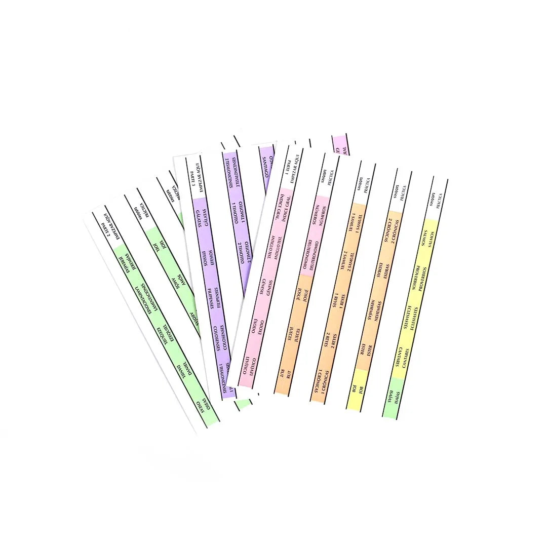 This set features 64 assorted rainbow-colored tabs and 16 reference tabs for the Old and New Testaments. The tabs are double-sided with a glossy finish, providing both durability and clarity. The 7 rainbow colors help you divide the major sections of the Bible, making it even easier to navigate through the scriptures.