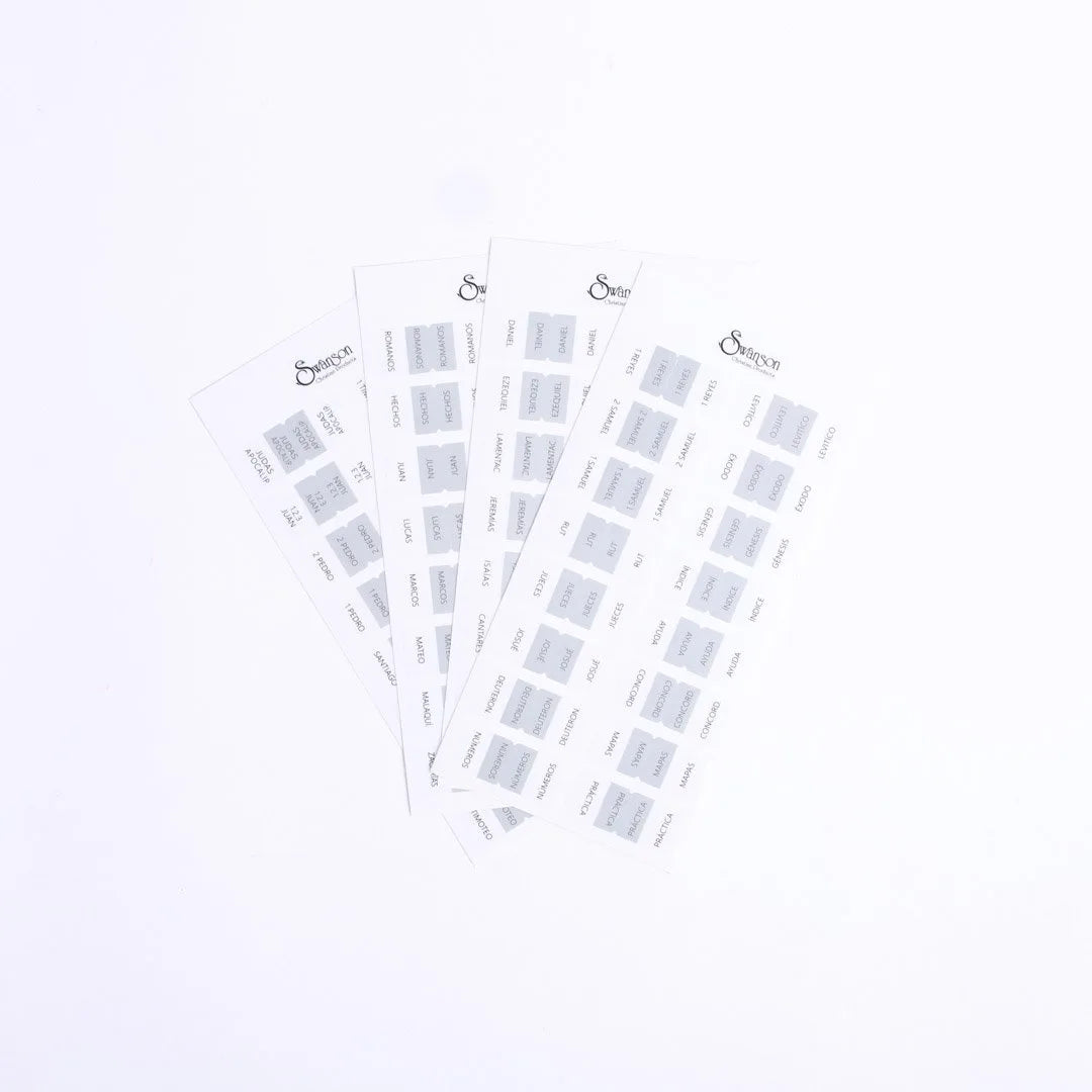 Make Bible reading and study more efficient with these easy-to-apply Bible Indexing Tabs. Ideal for both kids and adults, these tabs are designed to help you quickly find any book in the Bible at a glance—no more flipping through pages! Perfect for Bible study, personal devotion, or Sunday school, these tabs simplify navigation for readers of all ages.