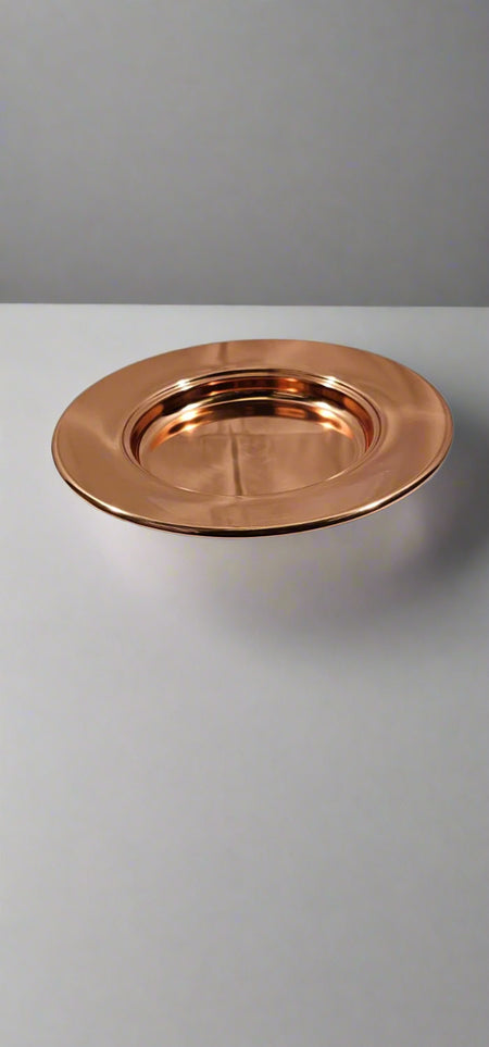 Each meticulously crafted piece of Artistic communion ware is designed to honor and glorify the solemn and sacred act of receiving holy communion. This solid copper bread plate gives a stunning and contempoary look. Its rich luster is protected by an exclusive urethane finish that will give many years of maintenance-free use.