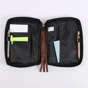 On the inside you will find two elastic pen loops, ready to accommodate your pen and highlighter, while two simple pockets on the left provide storage for erasers, pencils, and other essential accessories. On the right, a full size pocket offers ample space for your notes and paperwork, making sure that you stay organized.
