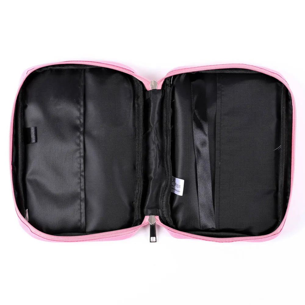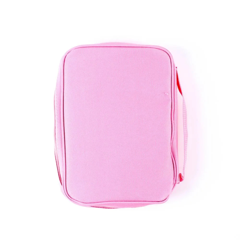 Designed for your convenience, the exterior comes with a carry handle for easy portability, and a front zippered pocket for storing notes, bookmarks, or small essentials. The matching pink zipper, adorned with a silver pull tab, not only secures your belongings but also complements the charming design.
