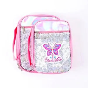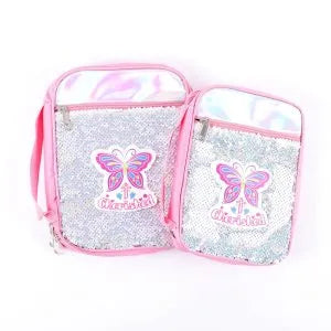 Discover our “Cherished” butterfly design on the cover, surrounded by reversible sequins transitioning effortlessly from silver to white. The holographic silver top panel adds a touch of sparkle to the design.