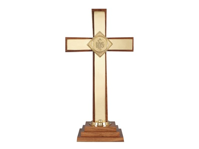 The Oxford hardwood Altar Cross with brass inlay comes with a solid brass exclusive IHS design from Sudbury Brass™.