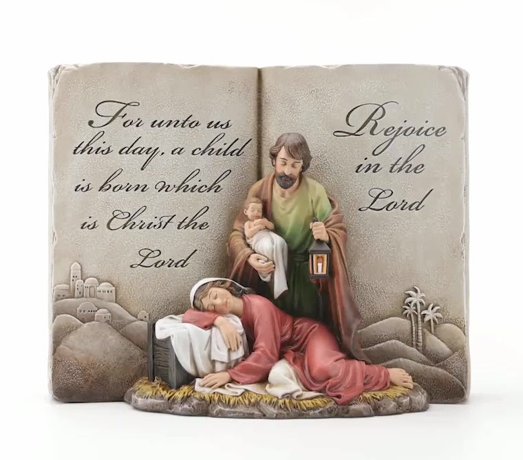 Chapter of Joy Statue | Holy Family in Scripture Pages | Resin | 8.5" Tall
