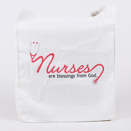 This eco-friendly tote is crafted in a soft white color and features a beautifully uplifting design that celebrates nurses with the heartfelt message: “Nurses are Blessings from God.” Rendered in bright pink with black and gray accents, the design is both eye-catching and meaningful, serving as a reminder of the invaluable contributions nurses make every day. It’s a perfect way to recognize their compassion, dedication, and selfless care, bringing encouragement and a sense of gratitude to those who see or carry it.