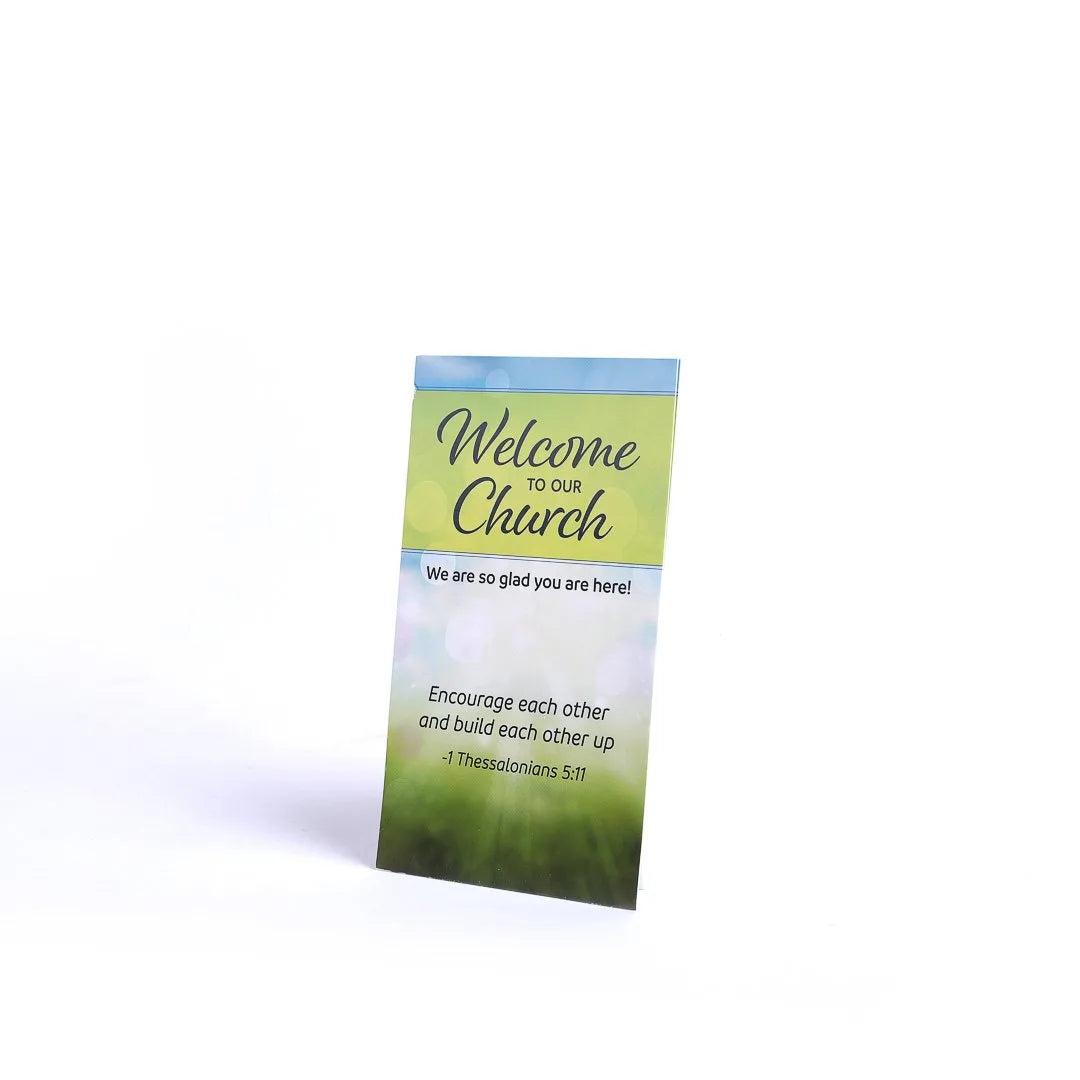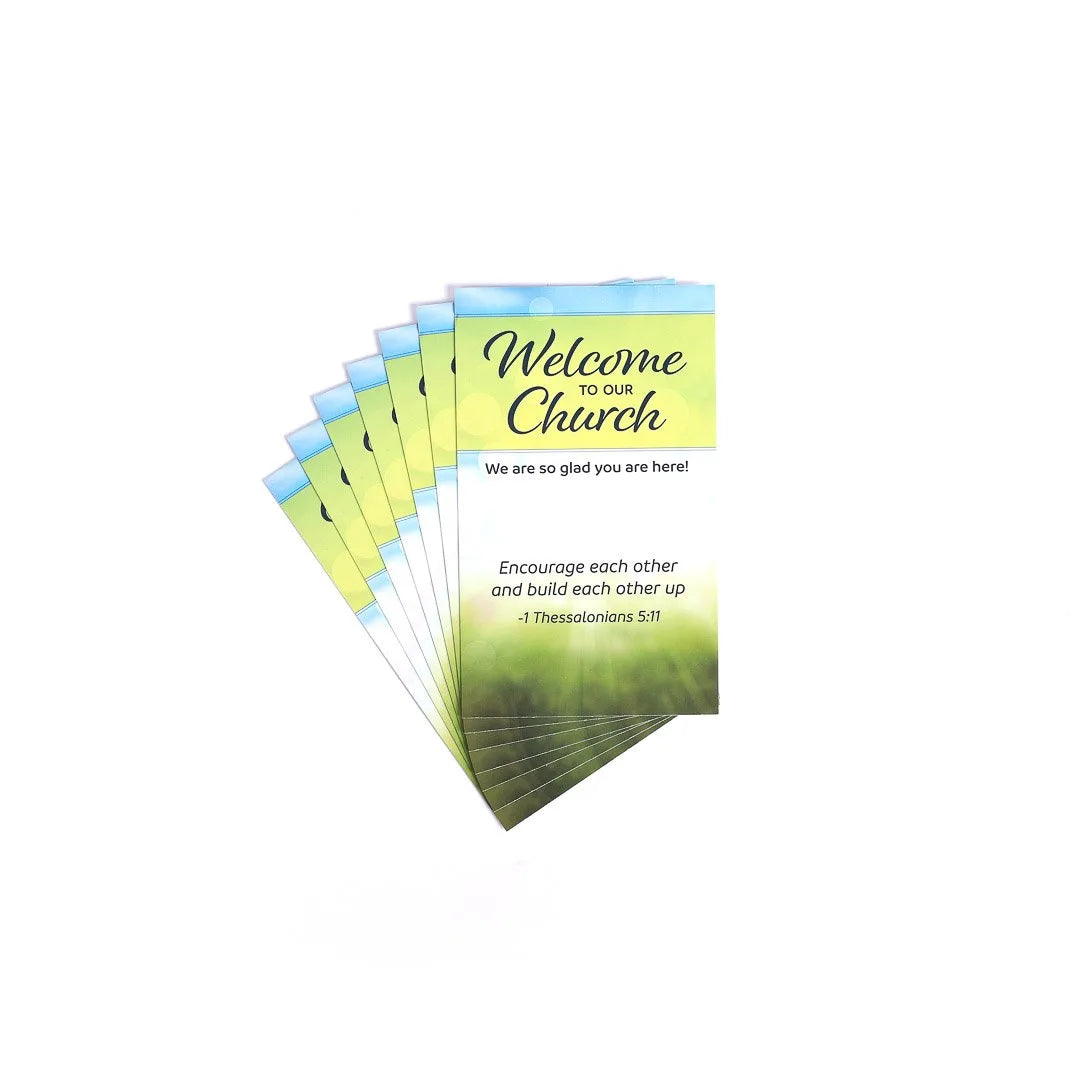 - Inspirational Design: The front of each card features a beautiful nature scene alongside the empowering message from 1 Thess. 5:11: “Encourage one another and build each other up.” This uplifting design is perfect for creating a warm, welcoming environment for all visitors.