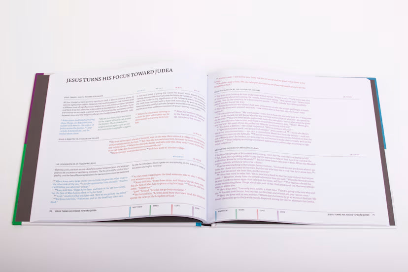 Journey through the life of Christ in chronological order with the CSB Christ Chronological. Find each Gospel writer’s account of events side-by-side with this parallel format and color-coded text to differentiate between the accounts in each book.