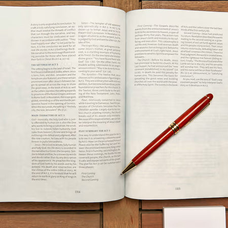In this unique plan, the books, chapters, and verses of the Bible are organized for readers in three main acts to track the story of Scripture from beginning to end. This format is designed to draw readers into the biblical narrative, helping them apply it in their own lives. Unlike most other chronological Bibles, this arrangement is not date-specific (e.g. “January 1”), so you can jump into the plan at any point in the calendar year.