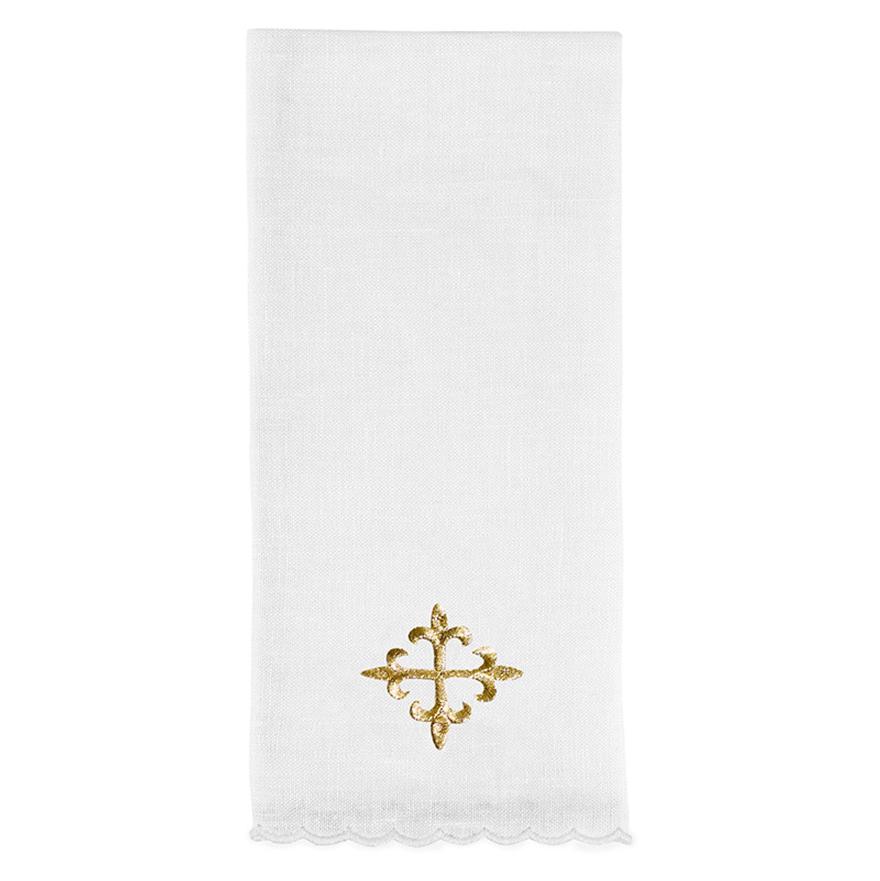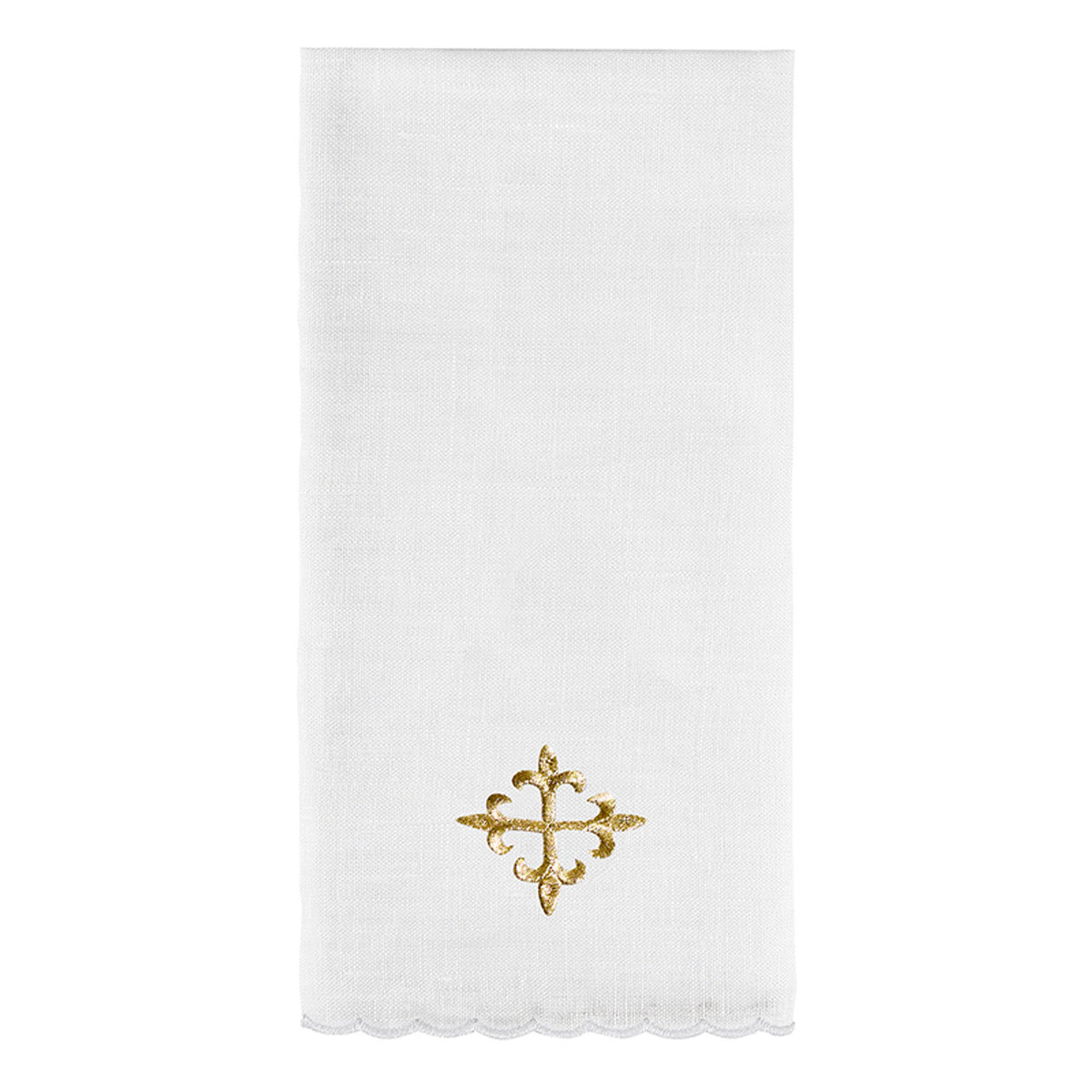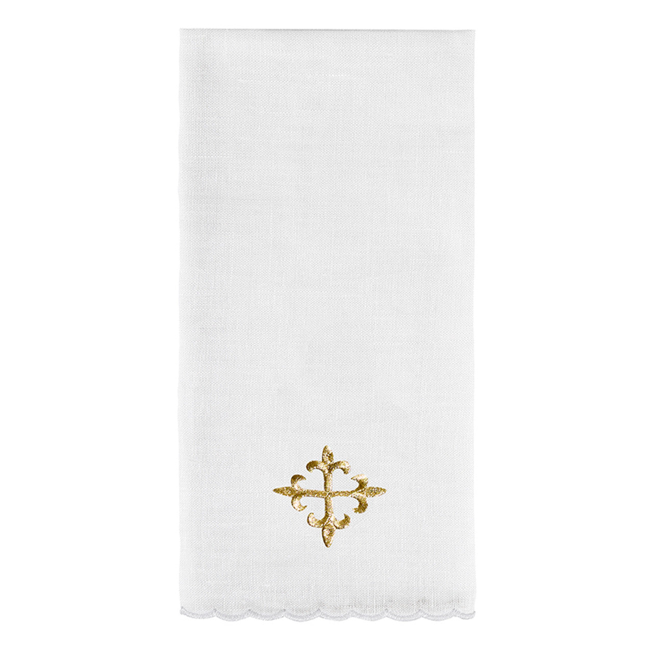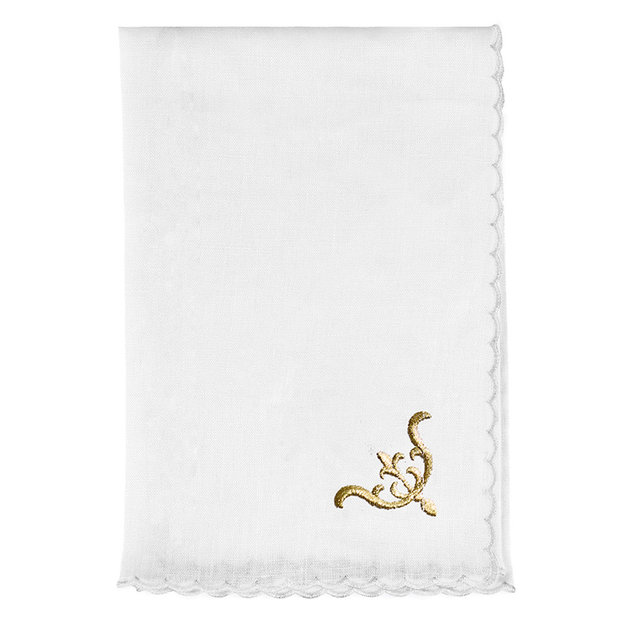 - Scalloped Edge Lavabo Towel with golden embroidery