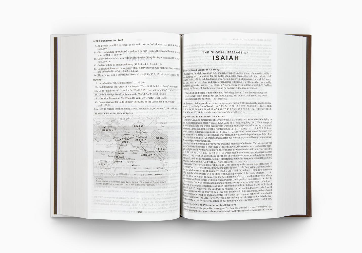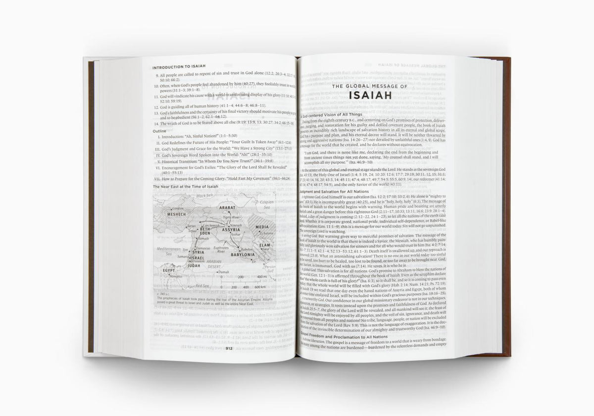 The ESV Global Study Bible is a one-volume study resource for globally minded Christians everywhere. It has been designed from beginning to end to be highly accessible and priced for distribution on a global scale. Each book of the Bible begins with an introduction, followed by a unique, insightful description of the overarching message of the book. The Bible also features a set of articles by Christian leaders around the world who apply the Bible to global issues, such as the role of government, the nature of the church, world religions, social ethics, and missions and evangelism. The notes and maps were adapted from the best-selling ESV Study Bible and contain a wealth of information about the biblical text, history, and geography. The ESV Global Study Bible is an outstanding resource at an extremely affordable price for Christians everywhere who seek to know and understand the Bible and how to apply it in a global context.