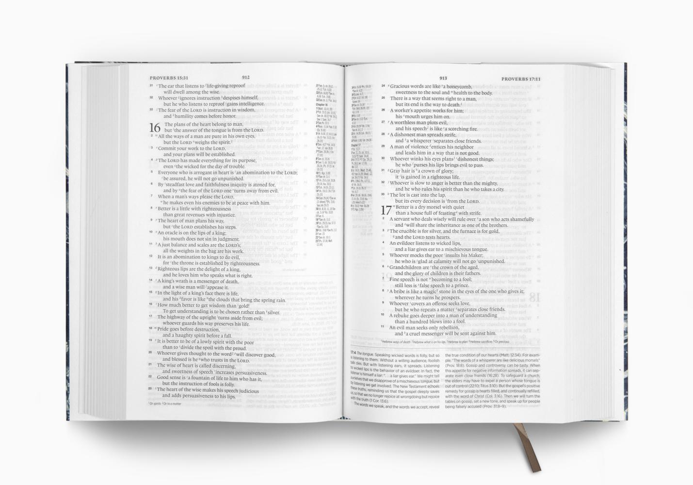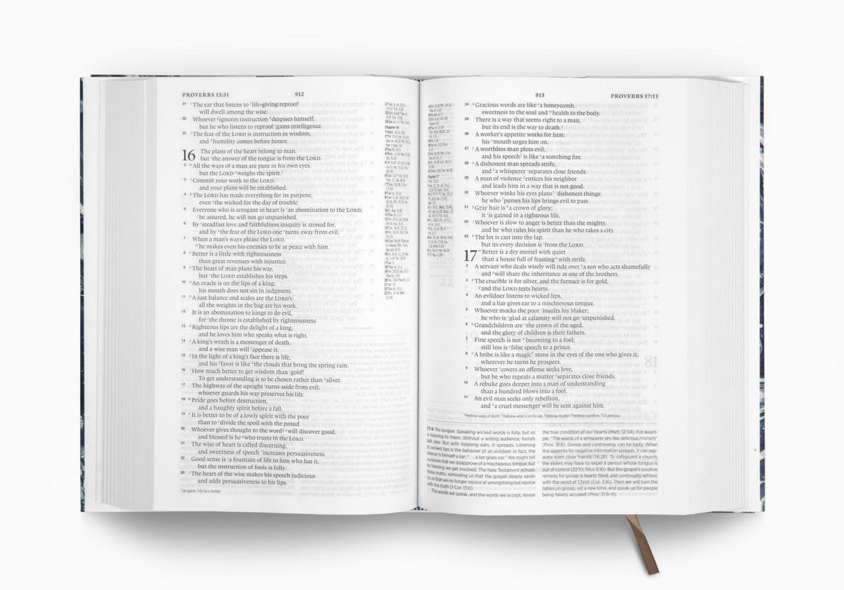 - Updated Design: Typesetting with 9-point type based on the original ESV Gospel Transformation Bible released in 2013
