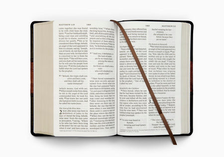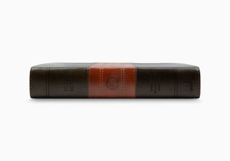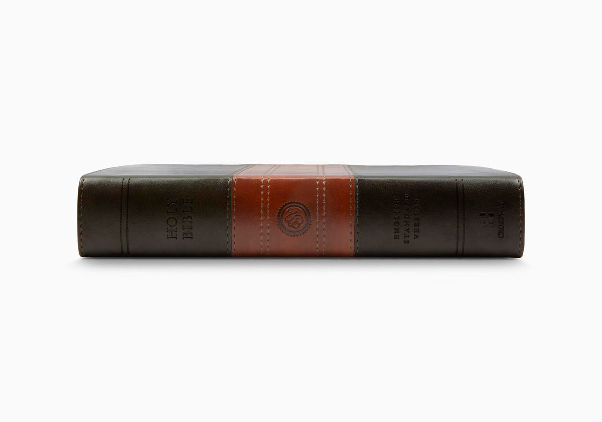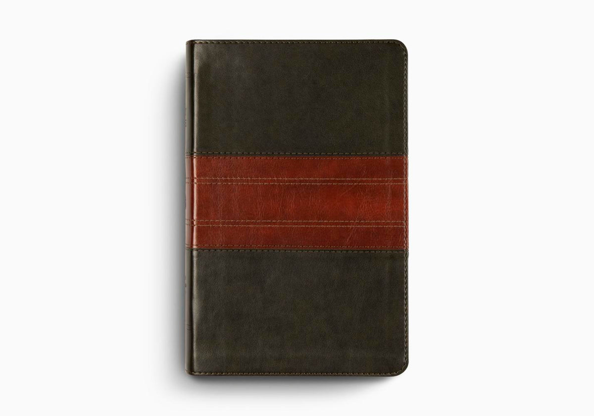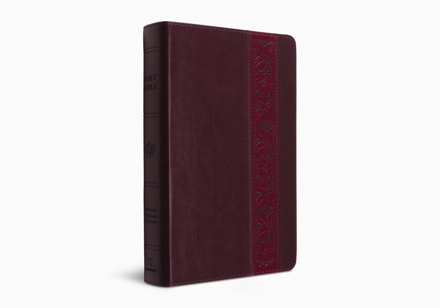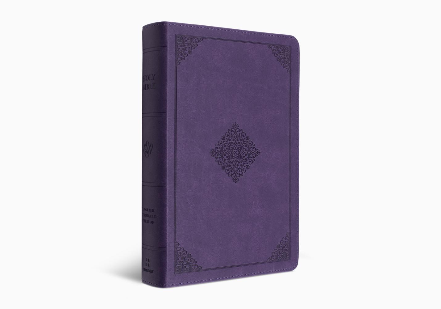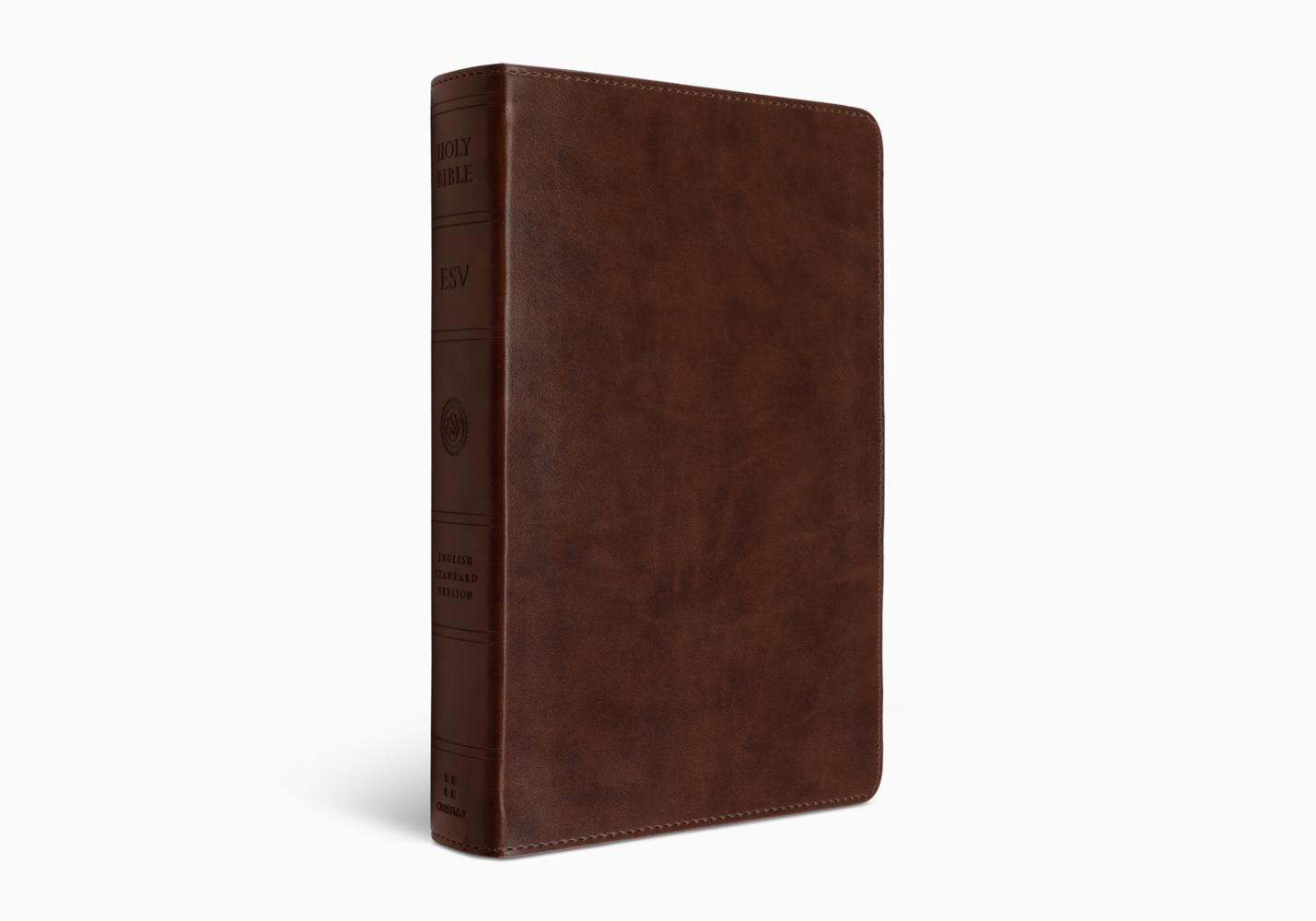 The ESV Large Print Personal Size Bible features highly readable 12-point Bible text in a portable trim size—made from quality materials and with line-matched text to minimize show-through from page to page, intended to provide a clean reading experience.