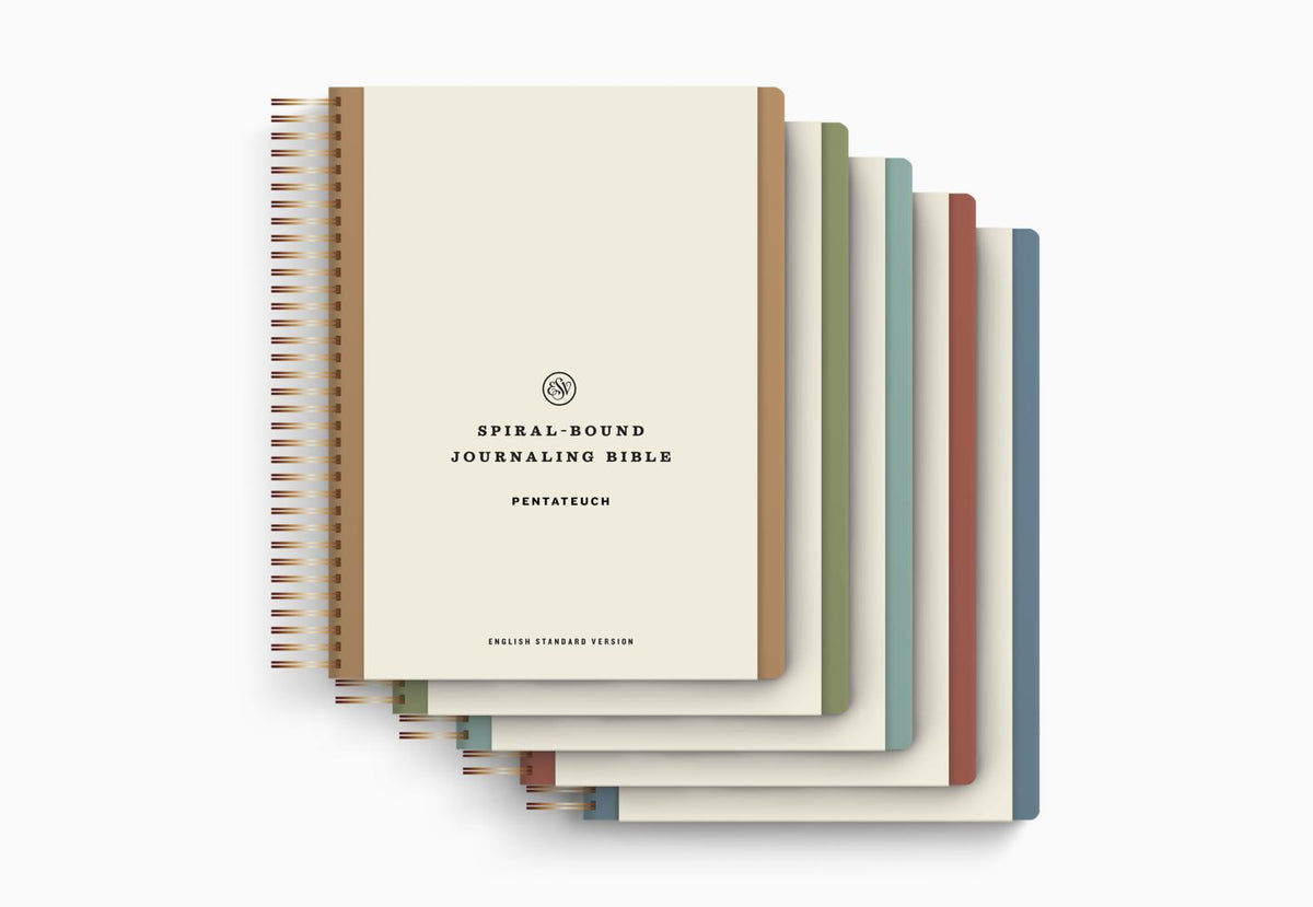 The ESV Spiral-Bound Journaling Bible, Five-Volume Set was created from the ground up to facilitate in-depth note-taking. Divided into 5 individual volumes—Pentateuch; Historical Books; Poetry; Prophets; and New Testament—this set features the complete ESV Bible text in an inviting, easy-to-read layout with generous space for notes. The spiral-bound format lies flat for comfortable reading and writing. Designed to encourage deeper interaction with Scripture, this journaling edition is ideal for recording prayers and reflections.