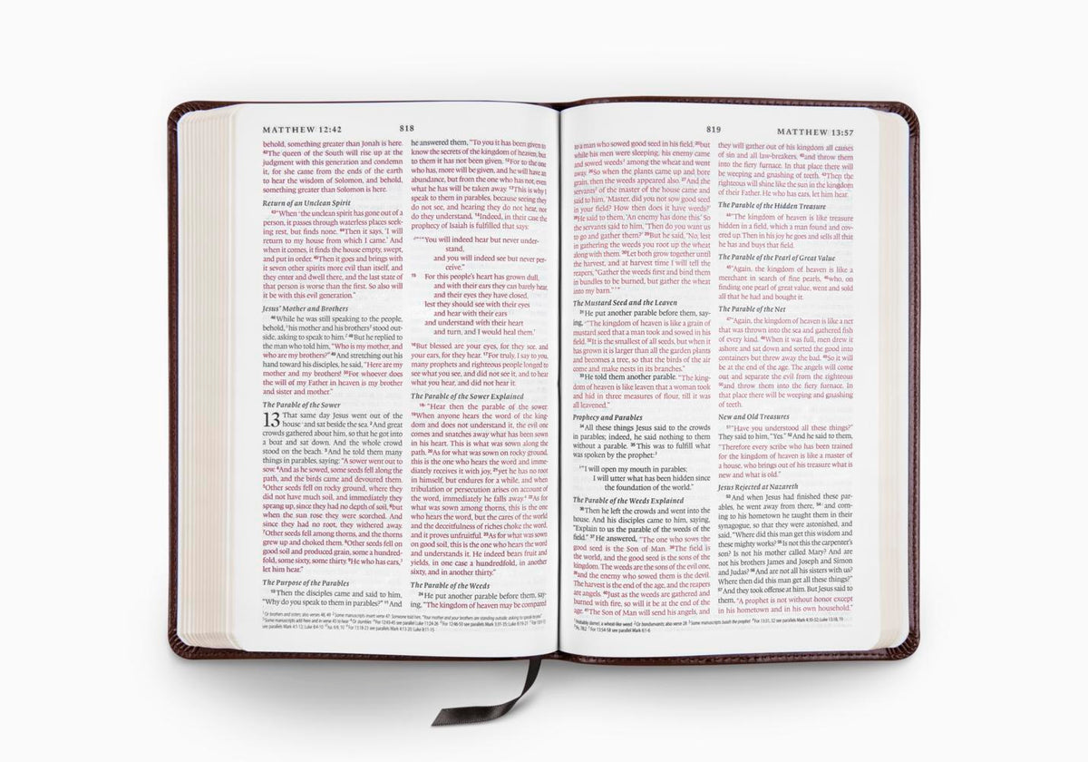 The top-selling ESV Thinline Bible is ideal for use at home and on-the-go. At one inch thick and available in multiple designs, there is an ideal ESV Thinline Bible for everyone.