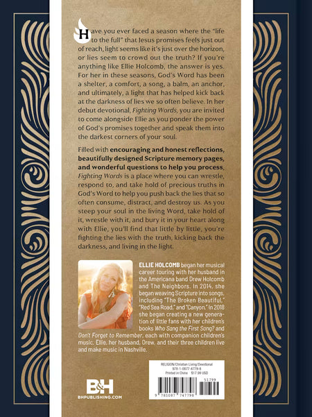If you’re anything like Ellie Holcomb, the answer is yes. For her in these seasons, God’s Word has been a shelter, a comfort, a song, a balm, and an anchor. Ultimately, it’s been a light that has helped kick back at the darkness of the lies we so often believe. In her debut devotional, Fighting Words, you are invited to come alongside Ellie, as you ponder the power of God’s promises together and speak them into the darkest corners of your soul.