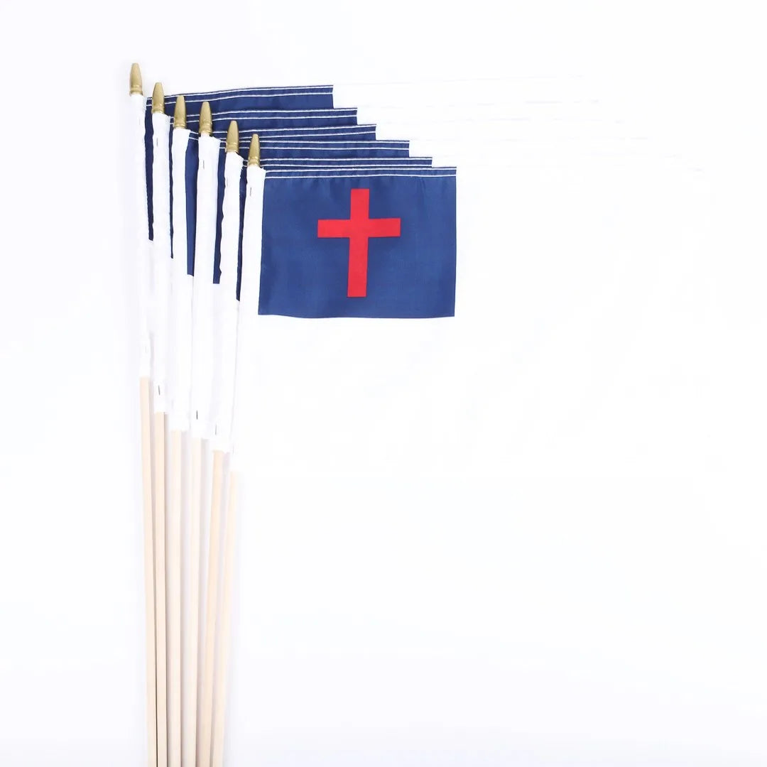Each flag in this pack is crafted from high-quality polyester, ensuring both durability and a lightweight structure for easy handling. Measuring 12 x 18 inches, these flags are large enough to be noticeable yet compact enough to carry or display effortlessly. The durable stitching guarantees they will stand the test of time, even with frequent use. The wooden staff, measuring approximately 25 inches long, provides a sturdy and reliable grip, making it easy to handle and display the flag with confidence.