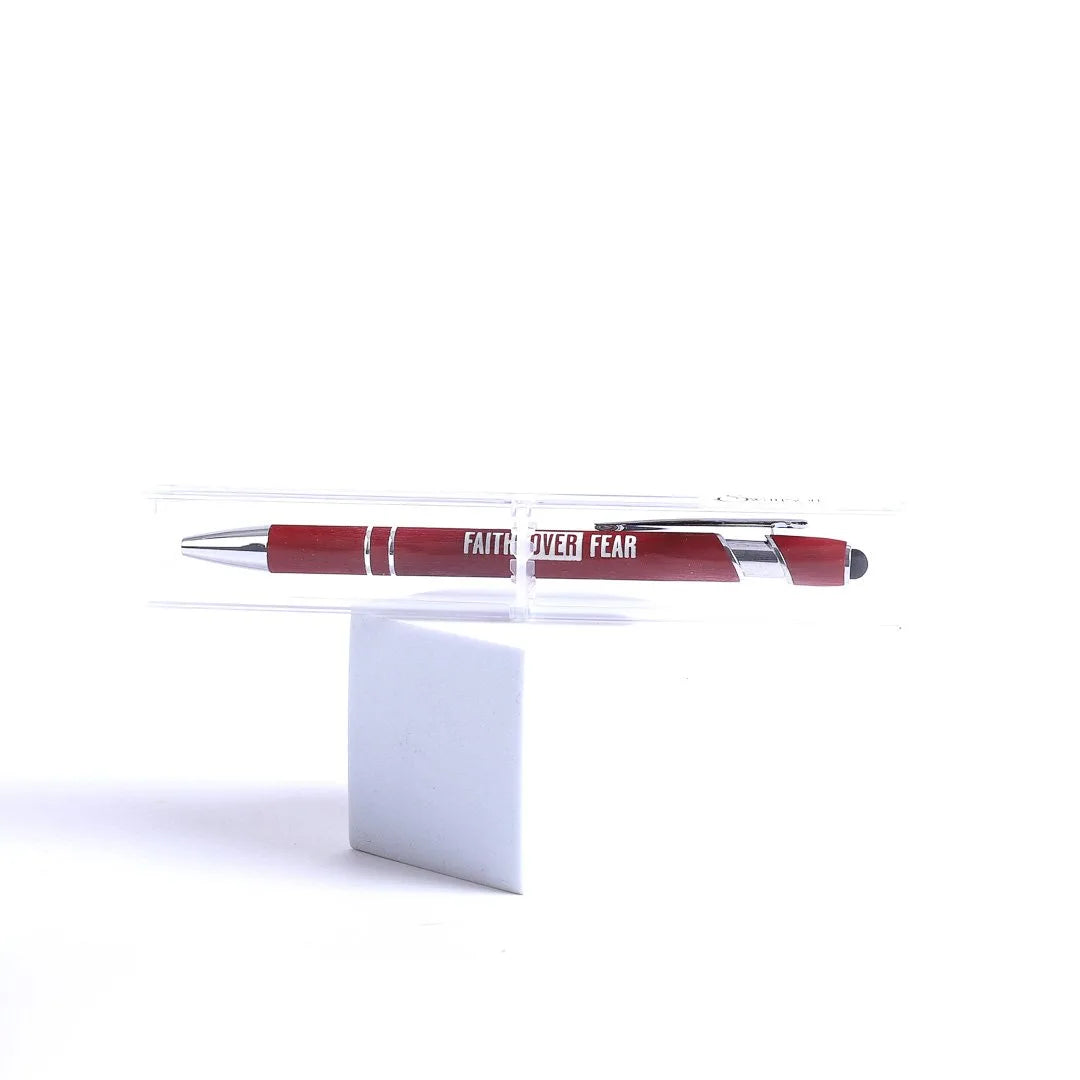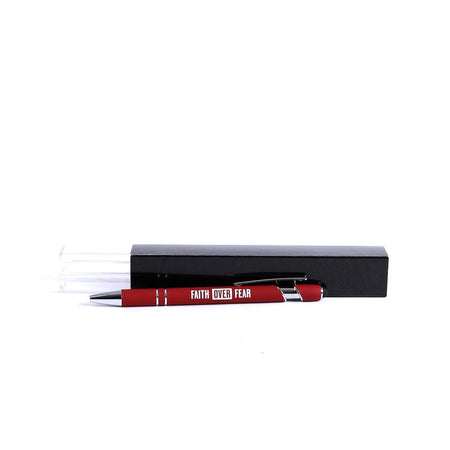 What truly sets this pen apart is its meaningful design. It features a bold red body with sleek silver accents and an engraved message that reads “Faith Over Fear.” This elegant design isn’t just eye-catching—it’s uplifting. It serves as a powerful symbol of courage and conviction, perfect for personal use or as a thoughtful gift.