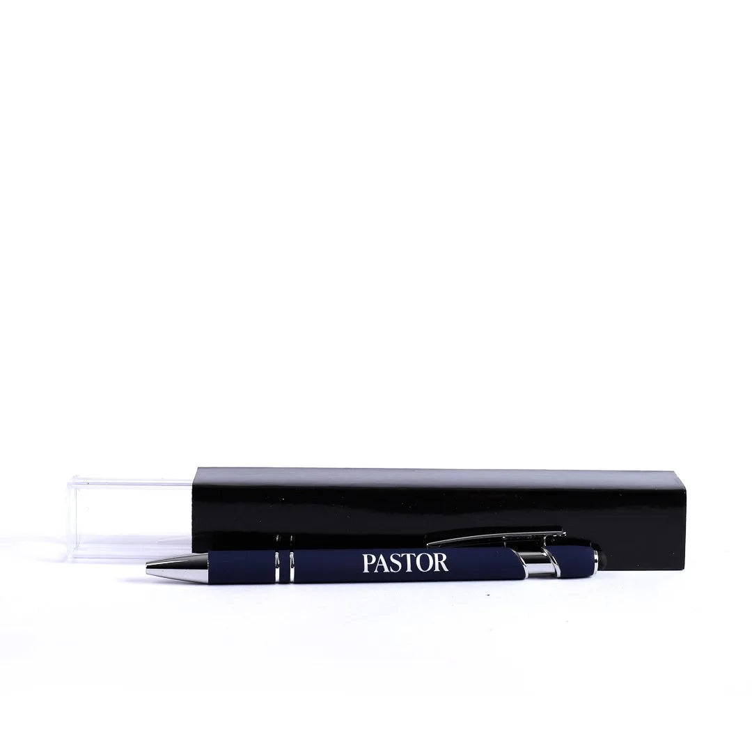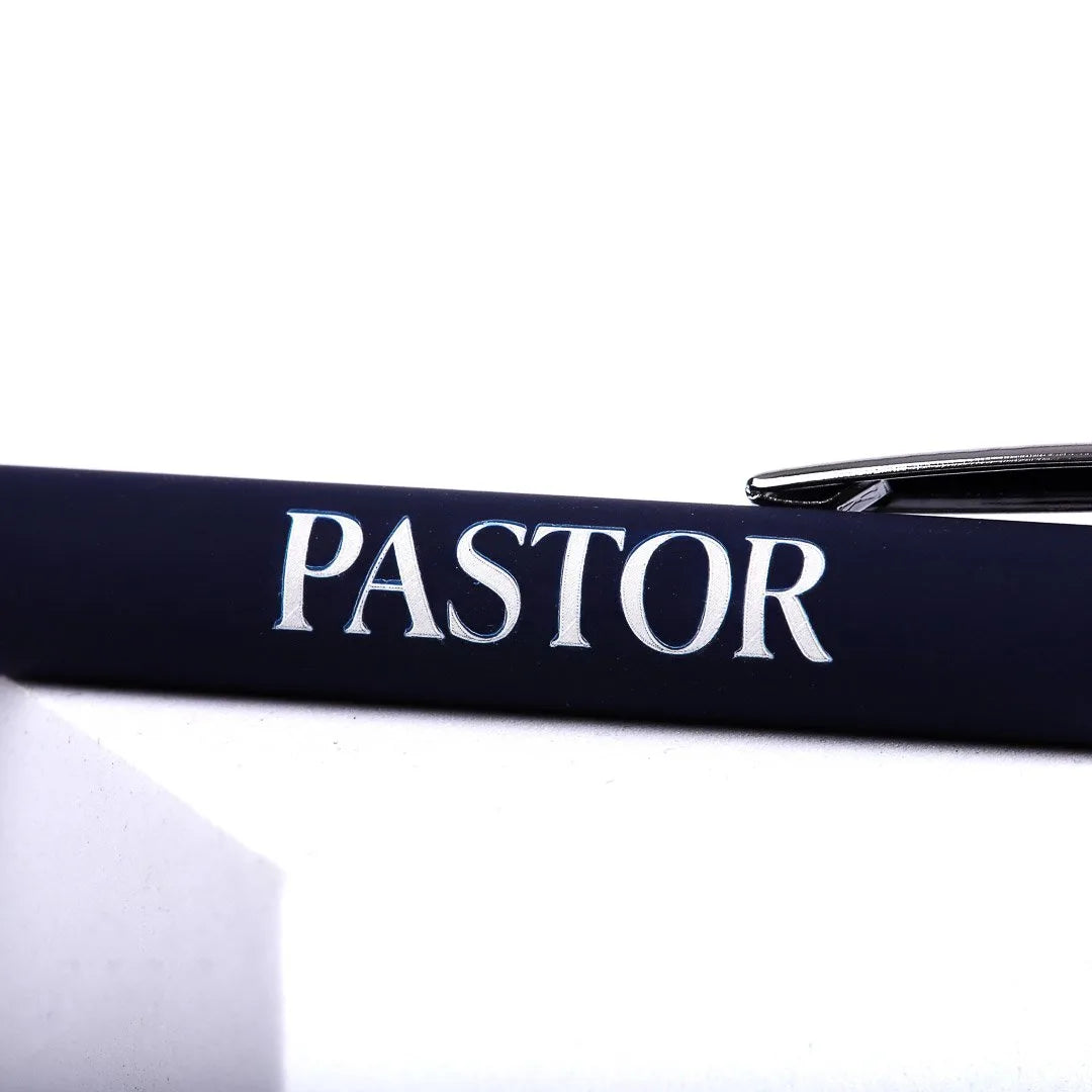 Its deep navy blue body, polished silver accents, and engraved “Pastor” design give it a refined, professional look. It’s a beautiful expression of appreciation wrapped in a tool they’ll use every day.