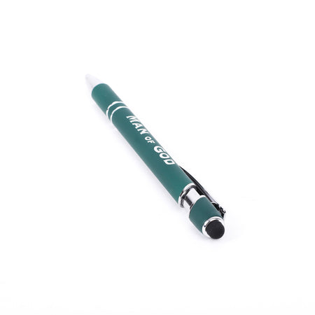 This green soft-touch gift pen combines sleek style and practicality, making it an ideal choice for anyone who values both inspiration and convenience. Featuring a smooth ballpoint pen for effortless writing and a stylus tip on the opposite end, it’s perfect for use on smartphones, tablets, and other touchscreens. The pen’s soft-touch finish ensures a comfortable grip, making it ideal for extended writing sessions. On the side, the words “Man of God” are elegantly printed in striking silver, offering a daily reminder of strength, faith, and purpose. Whether you’re jotting down notes, writing important messages, or navigating your device, this pen is both functional and meaningful. Its unique design and powerful message make it a thoughtful gift for any man of faith, whether for birthdays, holidays, or as a token of encouragement. This pen will inspire the wearer every time it’s used, reminding him of his strength in faith and his calling as a man of God. With its modern design and uplifting message, this pen is not just a writing tool, but a cherished keepsake that serves as a constant reminder of his spiritual purpose.