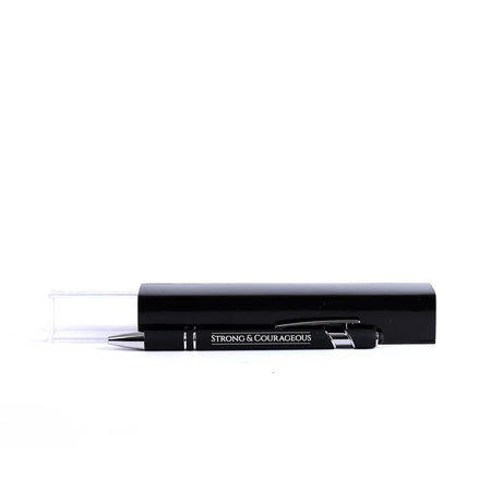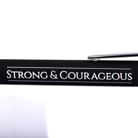 What sets this pen apart is its powerful message. Designed for those who are Strong and Courageous, it serves as a daily reminder of inner strength. The pen features a sleek black base with polished silver accents and an engraved design that reads “Strong & Courageous.” This bold, stylish design will impress anyone who appreciates both elegance and meaning.